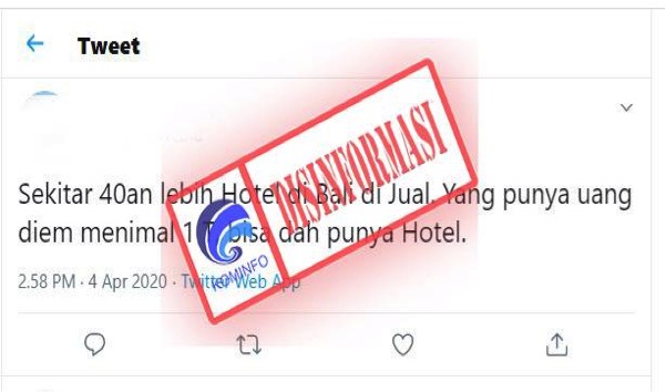 [DISINFORMASI] Puluhan Hotel di Bali Dijual Karena Terdampak Pandemi Virus Corona