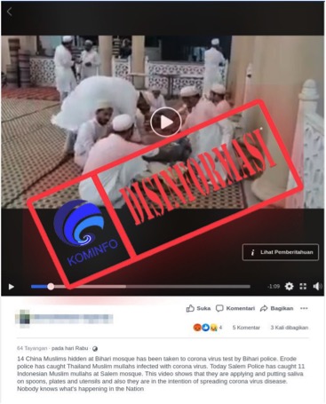 [DISINFORMASI] Virus Corona di India Disebarkan oleh Masyarakat Muslim dari Beberapa Negara