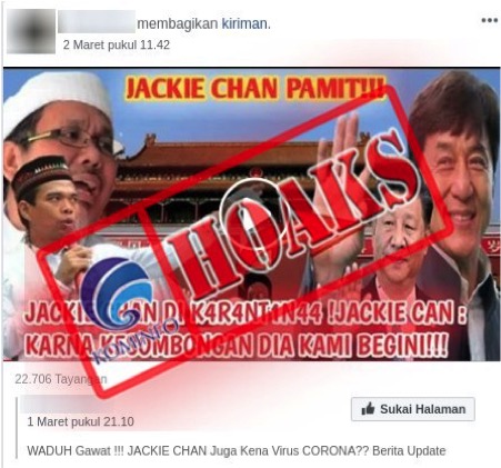 [HOAKS] Jackie Chan Terkena Virus Corona