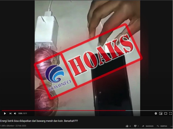 [HOAKS] Energi Listrik Bisa Didapatkan dari Bawang Merah dan Koin