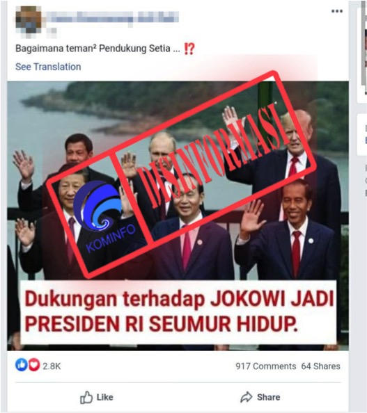 [DISINFORMASI] Dukungan Donald Trump dan Pemimpin-pemimpin Dunia, Jokowi jadi Presiden RI Seumur Hidup