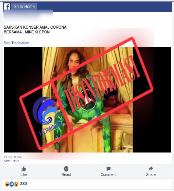 [DISNFORMASI] Video “Saksikan Konser Amal Corona Bersama Mike Kleponâ€