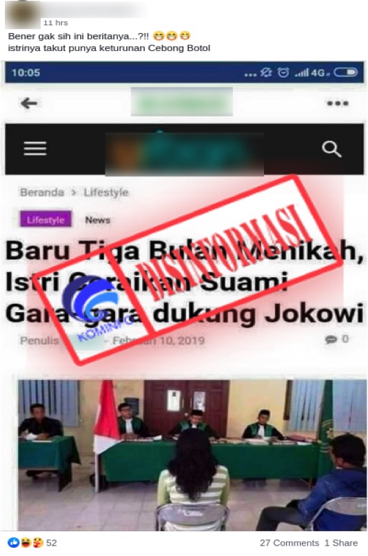[DISINFORMASI] Baru Tiga Bulan Menikah, Istri Ceraikan Suami Gara-gara Dukung Jokowi