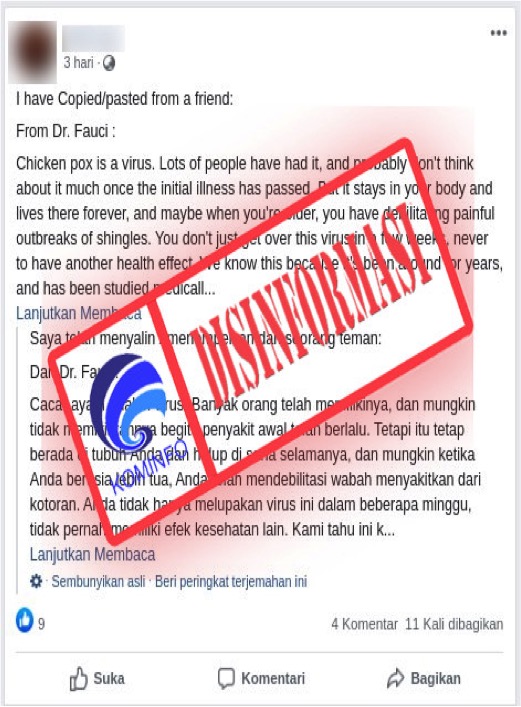 [DISINFORMASI] Pernyataan Anthony Fauci Terkait Covid-19 dan Cacar Air