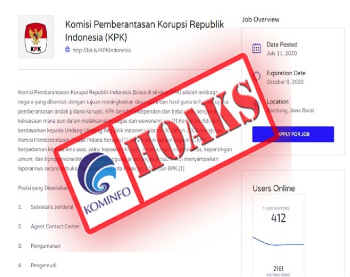 [HOAKS] Komisi Pemberantasan Korupsi (KPK) Gelar Rekrutmen Pegawai Baru