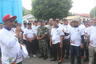 LAMTENG - RAPEMDA 92,8 FM, Bupati Lampung Tengah (Lamteng), Loekman Djoyosoemarto, di dampingi Ketua Komisi Pemilihan Umum (KPU) Lamteng, Budi Hadi Yunanto, melepas ratusan peserta Pemilu Run 2019, di Lapangan PU Prosida Bandarjaya, Minggu 7 April 2019. Di kesempatan tersebut, Bupati Loekman mengajak seluruh masyarakat Lamteng, agar dapat menggunakan hak pilihanya pada Pemilu 2019, dan tetap menjaga kondusifitas di wilayahnya masing-masing, selama digelarnya pesta demokrasi lima tahunan tersebut. "Saya minta masyarakat Lamteng tidak golput pada Pemilu 17 April mendatang. Gunakan hak pilih saudara untuk menentukan nasib bangsa kita, khususnya Kabupaten Lamteng lima tahun kedepan. Pilihlah calon sesuai dengan hati nurani dan memiliki visi-misi yang jelas," ajak Bupati. Loekman juga menghimbau agar masyarakat Lamteng tidak mudah terprovokasi dengan berita-berita yang belum tentu kebenarannya, dan tetap menjaga persatuan dan kesatuan. "Berbeda pilihan itu hal yang wajar dalam demokrasi. Tapi jangan sampai kita terpecah belah hanya karena beda pilihan, Lamteng harus aman, damai, dan kosdusif. Walau berbeda pilihan kita tetap saudara. Mari kita tunjukkan masyarakat Lamteng semuanya cinta damai," ujarnya. Sementara, Ketua KPU Lamteng, Budi Hadi Yunanto mengatakan, kegiatan ini merupakan salah satu upaya untuk meningkatkan partisifasi pemilih, dan mensosialisasikan agar masyarakat dapat menggunakan hak pilihnya pada Pemilu 17 April 2019 mendatang. "Sudah tidak zamannya lagi golput, kalau mencintai dan sayang terhadap Bangsa Ini, kami mohon seluruh masyarakat Lamteng untuk memberikan hak suaranya 17 April nanti, memilih DPRD Kabupaten, DPRD Provinsi, DPR RI, DPD dan Presiden, Wakil Presiden," tambah Budi. Patauan media dilokasi, Pemilu Run 2019 yang diselenggarakan KPU Lamteng ini diisi dengan kegiatan jalan sehat dan hiburan musik. Panitia juga menyediakan door prize berupa satu unit sepeda motor bagi para peserta Pemilu Run yang beruntung. (DISKOMINFOLAMTENG)