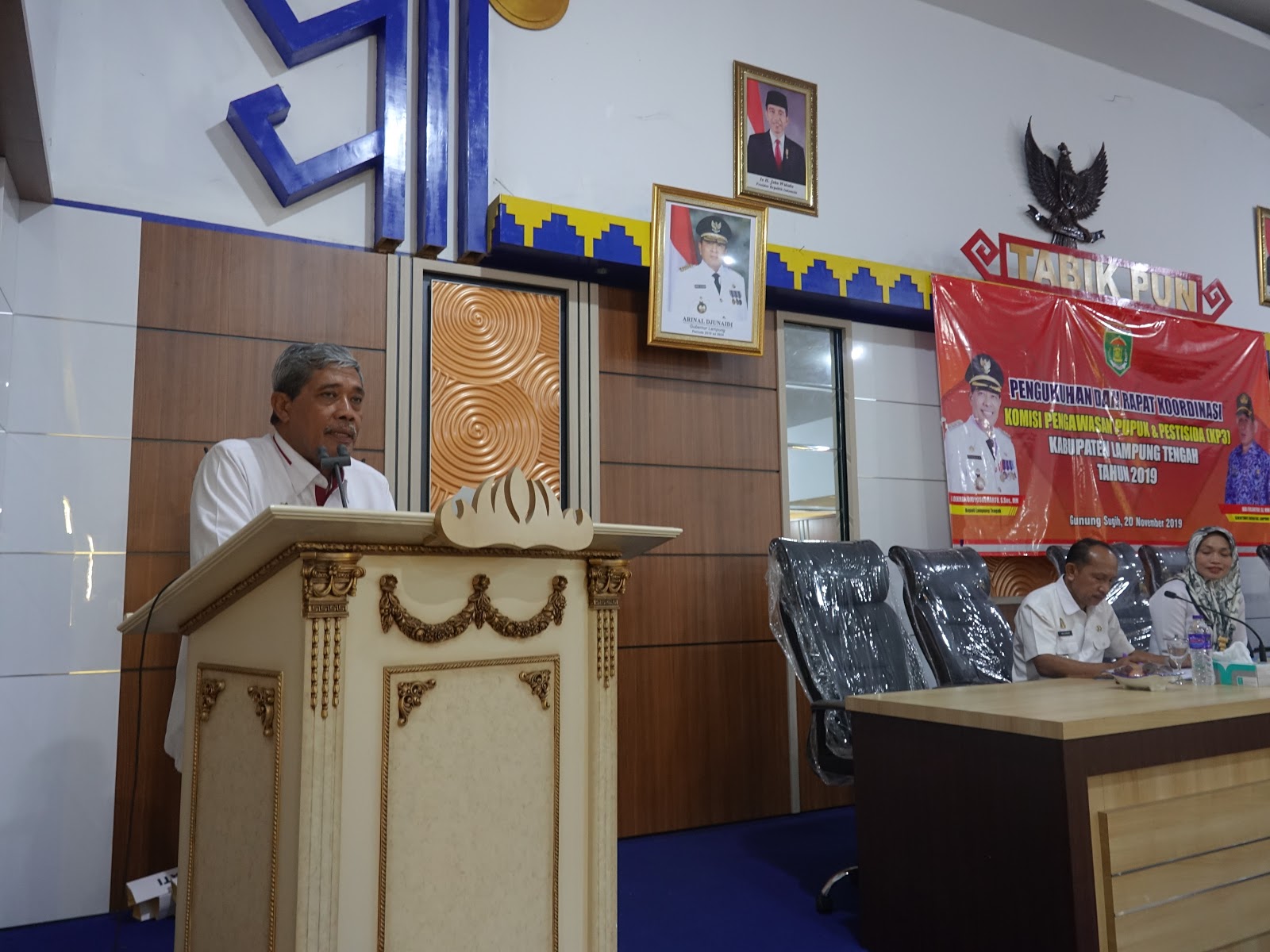 Gunung Sugih – Bupati Lampung Tengah Loekman Djoyosoemarto mengukuhkan tim komisi pengawasan Pupuk dan pestisida tahun 2019 di aula siger mas lantai 4 ,rabu 20 November 2019. Dalam sambutannya bupati lampung tengah loekman djoyosoemarto tujuan terbentuknya tim pengawas pupuk dan organic ini semata-mata demi kebaikan konsumen dan petani. Komisi Pengawasan Pupuk dan Pestisida (KP3) diharapkan dapat bekerja maksimal bekerja di lapangan dalam melakukan pengawasan dan memastikan kualitas dan harga pupuk. ditambahkan bupati bahwa keberadaan pupuk sangat di butuhkan oleh para petani,karna menurut bupati pupuk adalah sarana pruduksi pokok yang diperlukan oleh para petani, Untuk itu bupati berpesan kepada para pengurus yang baru dikukuhkan sebagai pengawas pupuk dan pestisida atau (KP3) untuk bekerja dengan sungguh sungguh dan bertanggung jawab dalam menjalaskan tugas yang mulia ini. Diakhir sambutannya bupati menegaskan kepada komisi pengawasan pupuk dan organik agar jangan sampai main main dalam menjalankan tugas pokoknya ( DISKOMINFO LAMPUNG TENGAH )