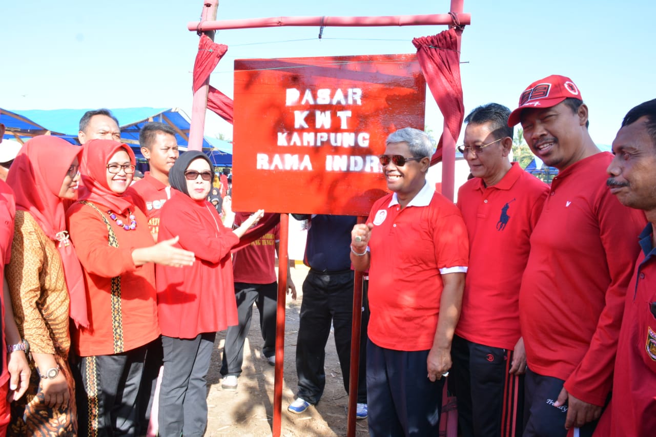 SEPUTIH RAMAN - RAPEMDA 92,8 FM, Sebanyak 130 Pedagang Tradisonal telah memulai aktifitasnya berjualan di Pasar KWT Kampung Rama Indra kecamatan seputih raman dan pasar KWT ini adalah pasar kedua yang didirikan oleh Kelompok Wanita Tani Kabupaten Lampung Tengah yang dimotori langsung oleh Ibu Hj.Ellya Lusiana Loekman. Demikian dilaporkan Kepala Dinas Ketahanan Pangan Jumali pada peresmian pasar KWT kampung Rama Indra kecamatan seputih Raman pada hari kamis 4 april 2019. Ditambahkan jumali dengan berdirinya pasar tradisional KWT ini tentunya berkat kerja keras kaum perempuan dalam menopang perekonomian keluarga, dijelaskan Jumali inilah kekuatan perempuan yang hebat,perempuan yang kuat dan perempuan yang penuh semangat. Sementara itu Ketua Kelompak Waniuta Tani Kabupaten Lampung Tengah ibu Hj.Ellya Lusiana Loekman dalam sambutannya berharap agar dengan berdirinya pasar tradisonal KWT ini tentunya dapat dijadikan sebagai tempat mengembangkan hasil hasil olahan makanan tradisonal yang di pruduksi oleh Kempok Wanita Tani kecamatan Seputih Raman. Ibu Ellya Berharap kedepannya pasar tradisoinal KWT ini akan semangkin berkembang dan maju sehingga roda perekonomian di kampung rama indra khususnya dan kecamatan seputih raman pada umumnya akan semangkin meningkat. Ditegaskan ibu ellya bahwa peran KWT dalam rumah tangga sangat besar disamping sebagai pendamping suami,sebagai ibu bagi anak anaknya namun juga bisa membantu suami dalam meningkatkan perekonomian keluarga. Ditempat yang sama dalam arahannya bupati lampung tengah loekman djoyosoemarto mengatakan atas nama pemerintah Daerah bupati sangat mengapresiasi atas berdirinya pasar tradisonal KWT ini, karna menurut bupati dengan adanya pasar KWT ini masyarakat kampung rama indra tidak perlu jauh jauh kepasar induk untuk berbelanja kebutuhan sehari hari. Dijelaskan bupati dengan berdirinya pasar pasar tradisonal dikampung kampung ini sesuai dengan harapan dari presiden RI bapak Joko widodo bahwa uang yang ada dikampung ini beredar dikampung ini terus karna dengan digelontorkan dana desa dari pemerintah pusat dana tersebut tidak keluar dari desa ini. Usai memberikan arahan dengan didampingi sekertaris daerah Adi Erlansyah dan ketua KWT Lampung Tengah Ibu Hj.Ellya Lusiana Loekman,secara resmi bupati membuka kain selubung sebagai pertanda pasar Tradisonal KWT ini secara resmi mulai dioperasikan ( DISKOMINFOLAMTENG).