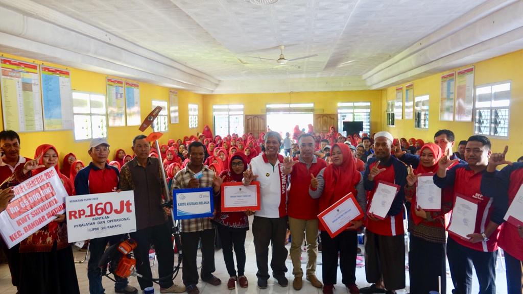 BANDAR MATARAM , RAPEMDA 92,8 FM - Bupati menghadiri silaturahmi dan pembinaan kadar pertanian PPL,Korluh Pertanian, peternakan,pengairan, P3A (Perkumpulan Petani Pemakai Air) , dan Gabungan Kelompok Tani (Gapoktan) sekecamatan Bandar Mataram. Kegiatan ini masih dalam rangkaian kunjungan kerja (Kunker) Bupati Lampung Tengah Loekman Djoyosoemarto yang bertempat di Balai Kampung Uman Agung kec Bandar Mataram. Selasa (03/09/2019). Kepala Dinas Pertanian Lampung Tengah Hatta Rajasa dalam laporan nya, acara ini juga bertujuan untuk meningkatkan semangat seluruh Gapoktan dan elemen terkait untuk terus bekerja giat dan mendukung program pemerintah daerah. Dalam sambutan nya Bupati berpesan kepada seluruh Gapoktan di Kecamatan Bandar Mataram untuk berupaya memaksimalkan kinerja demi terciptanya kehidupan yang sejahtera. Pada kesempatan ini Bupatinjuga menyerahkan bantuan untuk masyarakat Bandar Mataram berupa bantuan padi Hibrida untuk 4 ( empat ) Gabungan Kelompok Tani( Gapoktan), yaitu Gapoktan Karya Maju 1,Sri Rahayu,Sumber Tani, dan Karya Maju. Bantuan bibit sayuran untuk Kelompok Wanita Tani (KWT) Sekar Arum. Bantuan serasi untuk Poktan Karya Maju, Bantuan coolbox sebanyak dua unit untuk Kelompok Pengolah dan Pemasar ( Pokhlasar ) Gabus Jaya, bantuan freezer,bantuan asuransi nelayan untuk 106 orang,mesin potong rumput satu unit, dan bantuan peralatan PUPM 2019. Bupati Lampung Tengah Loekman Djoyosoemarto berharap bantuan yang telah diberikan dapat digunakan dengan baik dan semoga dapat membantu masyarakat. "Dukung terus langkah kerja pemerintah daerah karena yang saya lakukan semata mata demi kesejahteraan masyarakat Lampung Tengah," ujar Bupati.(DISKOMINFO LT )