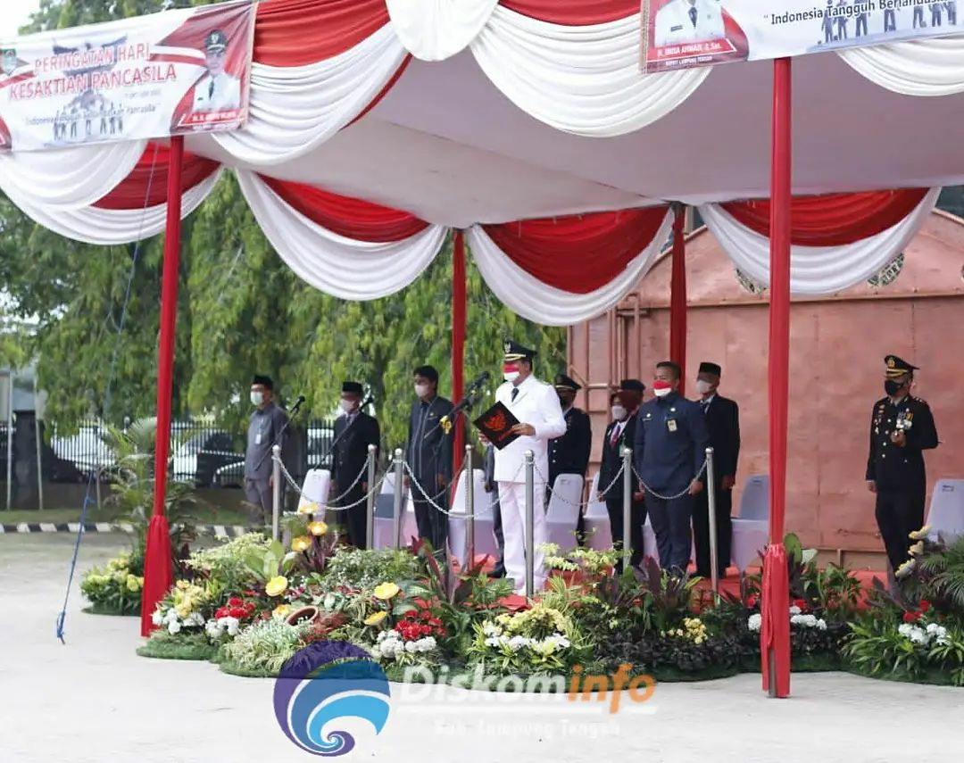 Bupati Lampung Tengah Musa Ahmad menjadi Inspektur Upacara pada kegiatan Hari Kesaktian Pancasila 1 Oktober 2021 di Halaman Pemda Lampung Tengah. Hadir dalam kesempatan tersebut Forkopimda Lampung Tengah, Kepala Perangkat Daerah, serta peserta Upacara yang terbatas dengan menerapkan Protokol Kesehatan yang ketat. Upacara tersebut juga serentak dilaksanakan di seluruh Indonesia yang terhubung juga secara virtual dengan Masing - masing Dinas Dan Camat se-Kabupaten Lampung Tengah. Dengan mengusung tema Indonesia Tangguh berlandaskan Pancasila, sementara itu Bupati Lampung Tengah Musa Ahmad memaknai Hari Kesaktian Pancasila ini semoga bisa menumbukan kesadaran masyarakat betapa pentingnya hidup rukun dalam bertetangga yang berlandaskan pancasila. Sehingga diharapkan kedepan tidak ada yang dapat memecahbelah bangsa ini dan masyarakat apabila masyarakatnya hidup dengan toleransi. Bupati juga mengajak masyarakat untuk tetap menjaga situsi dan kondisi yang aman dan kondusif di wilayah Lampung Tengah, sehingga masyarakatnya bisa beraktivitas dengan nyaman dan damai. (Diskominfo Kabupaten Lampung Tengah)