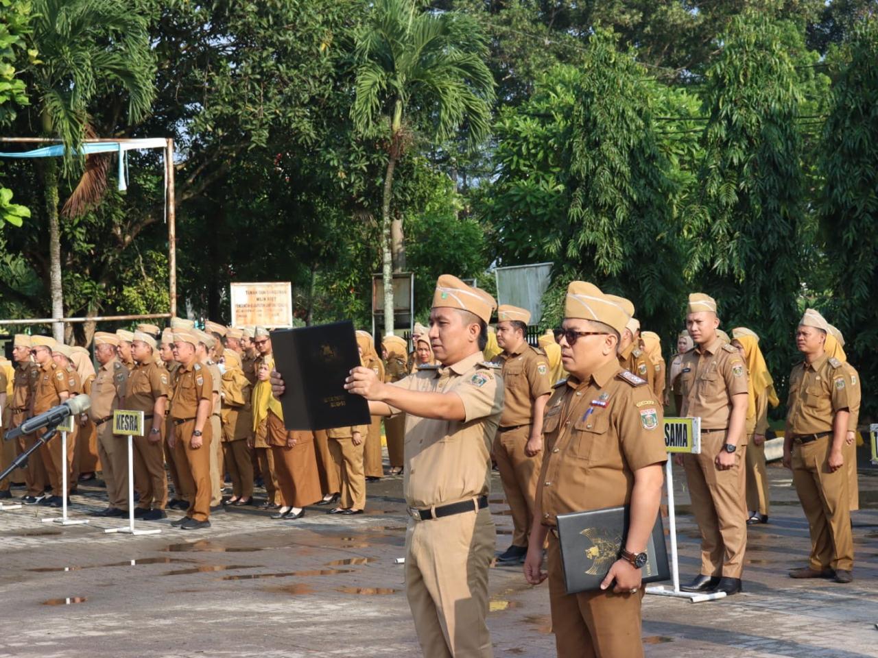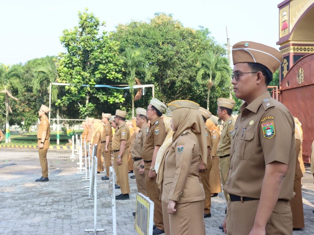 Wakil Bupati Lampung Tengah, I Komang Koheri, menjadi pembina apel mingguan yang digelar di halaman Kantor Pemerintah Kabupaten Lampung Tengah Senin pagi (28/07/2025). Kegiatan rutin ini diikuti oleh para Staf Ahli Bupati, Para Asisten, seluruh Aparatur Sipil Negara (ASN), serta para Kepala Perangkat Daerah di lingkungan Pemerintah Kabupaten Lampung Tengah. Dalam amanatnya, Wakil Bupati menegaskan pentingnya disiplin, tanggung jawab, dan peningkatan kinerja bagi seluruh aparatur pemerintah. Menurutnya, pelayanan publik yang optimal hanya dapat terwujud apabila setiap ASN mampu bekerja dengan penuh dedikasi, menjaga profesionalitas, dan mengutamakan kepentingan masyarakat. “Seluruh jajaran harus senantiasa menjaga kekompakan, dan menpuyai nilai tujuan dalam melaksanakan tugas-tugas Pemerintahan serta mendukung pembangunan daerah. Apel mingguan ini bukan sekadar rutinitas, tetapi juga wadah untuk memperkuat semangat kebersamaan,” ujar I Komang Koheri. Beliau juga menekankan bahwa apel mingguan memiliki peran strategis sebagai media komunikasi langsung antara pimpinan dan ASN. Melalui kegiatan ini, pimpinan daerah dapat menyampaikan berbagai arahan, evaluasi, serta penegasan terhadap program-program prioritas yang sedang maupun akan dilaksanakan, sehingga seluruh perangkat daerah memiliki pemahaman yang sama dalam mewujudkan target pembangunan. Lebih lanjut, Wakil Bupati menyampaikan harapannya agar melalui kegiatan apel rutin, para ASN dan pejabat struktural di Kabupaten Lampung Tengah dapat terus meningkatkan kedisiplinan, etos kerja, dan semangat kebersamaan. Hal ini, menurutnya, merupakan kunci penting dalam mendukung tercapainya visi pembangunan Kabupaten Lampung Tengah. (Diskominfotik Lampung Tengah)