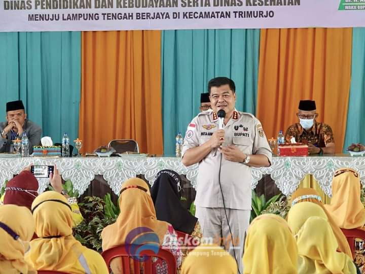 Trimurjo - Kunjungan Kerja Bupati dan Wakil Bupati Lampung Tengah pada hari kedua di Kecamatan Trimurjo dilanjutkan dengan acara dialog interaktif bersama tenaga pendidik dan tenaga kesehatan se-Kecamatan Trimurjo bertempat di SMPN 2 Trimurjo (11/06/2021). Kesempatan tersebut tidak di sia-siakan oleh tenaga pendidik dan kesehatan untuk bertanya langsung kepada para pemimpin Lampung Tengah tersebut, mereka berharap Bupati dan Wakil Bupati bisa mewujudkan apa yang menjadi keinginan mereka, sehingga bisa meningkatkan kesejahteraan para tenaga pendidik dan kesehatan. Sementara itu Bupati Lampung Tengah Musa Ahmad dalam arahannya mengajak untuk seluruh elemen baik tenaga pendidik maupun kesehatan untuk bersama sama membangun Lampung Tengah dalam hal ini dibidang pendidikan dan kesehatan, karena dengan meningkatkan hal tersebut Lampung Tengah bisa. "Saya selaku Bupati dan Mas Ardito selaku Wakil Bupati selalu mengupayakan yang terbaik bagi masyarakat dengan program kerja yang mengutamakan kepentingan masyarakat," ujar Musa Ahmad. Musa Ahmad berkata bahwa dibutuhkan kerjasama semua pihak agar Lampung Tengah bisa menjadi Kabupaten terbaik di Provinsi Lampung, menjaga kerukunan dan kekompakan dengan sesama warga masyarakat juga menjadi pesan dari orang nomor 1 di Lampung Tengah ini. (Diskominfo Kabupaten Lampung Tengah)