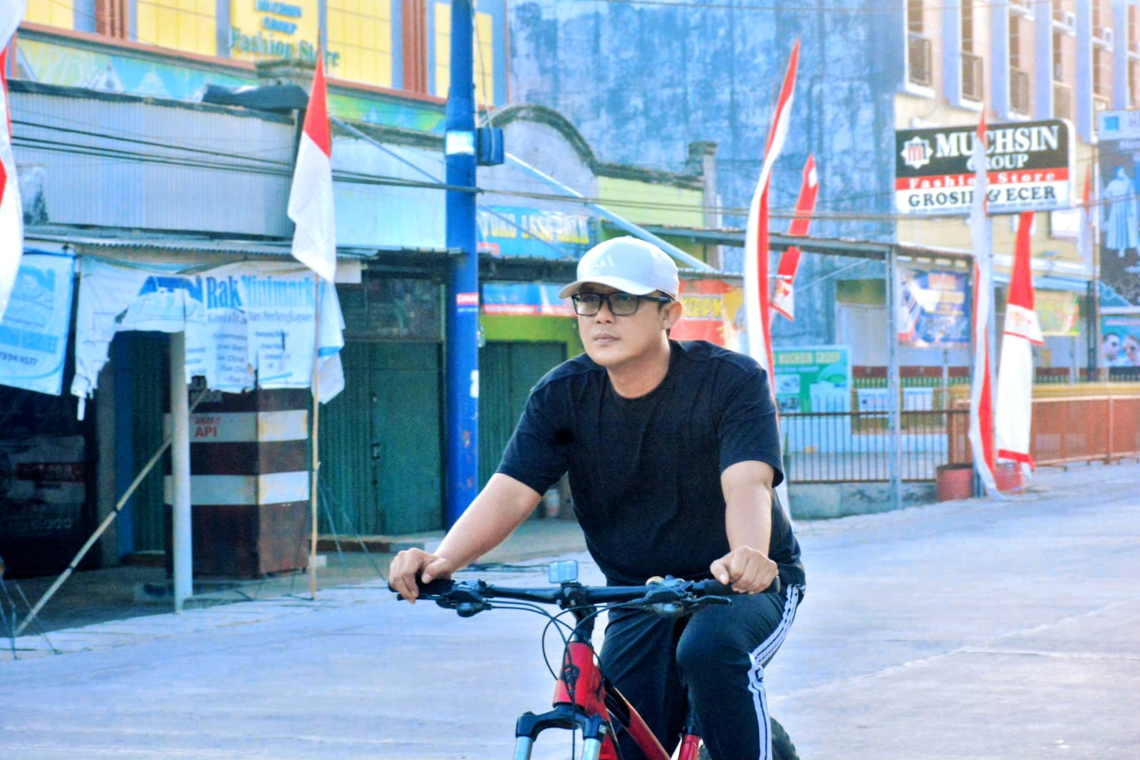 Bupati Lampung Tengah, Ardito Wijaya, bersama Ketua Tim Penggerak PKK, turut menghadiri kegiatan Car Free Day (CFD) yang berlangsung di Komplek Tugu Canang, Gunung Sugih, Minggu pagi (03/08/2025). Kehadiran Bupati dan Ketua TP PKK tersebut mendapat sambutan hangat dari masyarakat yang memadati area CFD untuk berolahraga, bersantai, dan menikmati suasana bebas kendaraan bermotor. Dalam kesempatan tersebut, Bupati mengajak seluruh warga untuk menjaga pola hidup sehat, mempererat rasa kebersamaan (guyub), serta terus berbenah demi menjadikan Lampung Tengah semakin maju dan nyaman untuk semua. "Melalui kegiatan seperti ini, kita bisa memperkuat kebersamaan dan meningkatkan kesadaran akan pentingnya hidup sehat. Mari kita jaga lingkungan, tubuh, dan kebersamaan kita," ujar Ardito Wijaya. Kegiatan CFD juga dimeriahkan dengan senam massal, Gebyar Pasar Murah, bazar UMKM, serta berbagai hiburan rakyat yang turut mendukung gerakan gaya hidup sehat dan ekonomi lokal. (Diskominfotik Lampung Tengah)