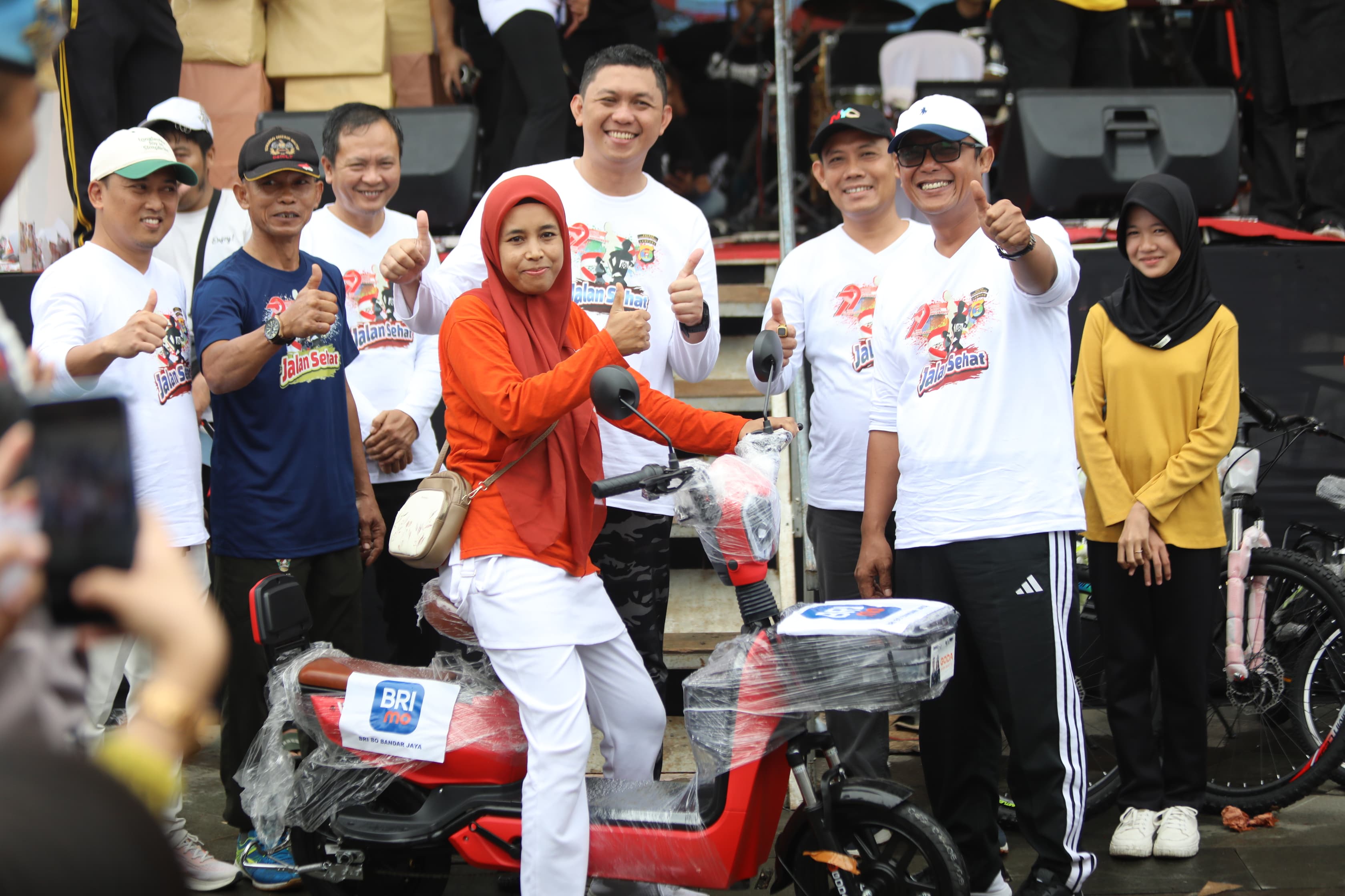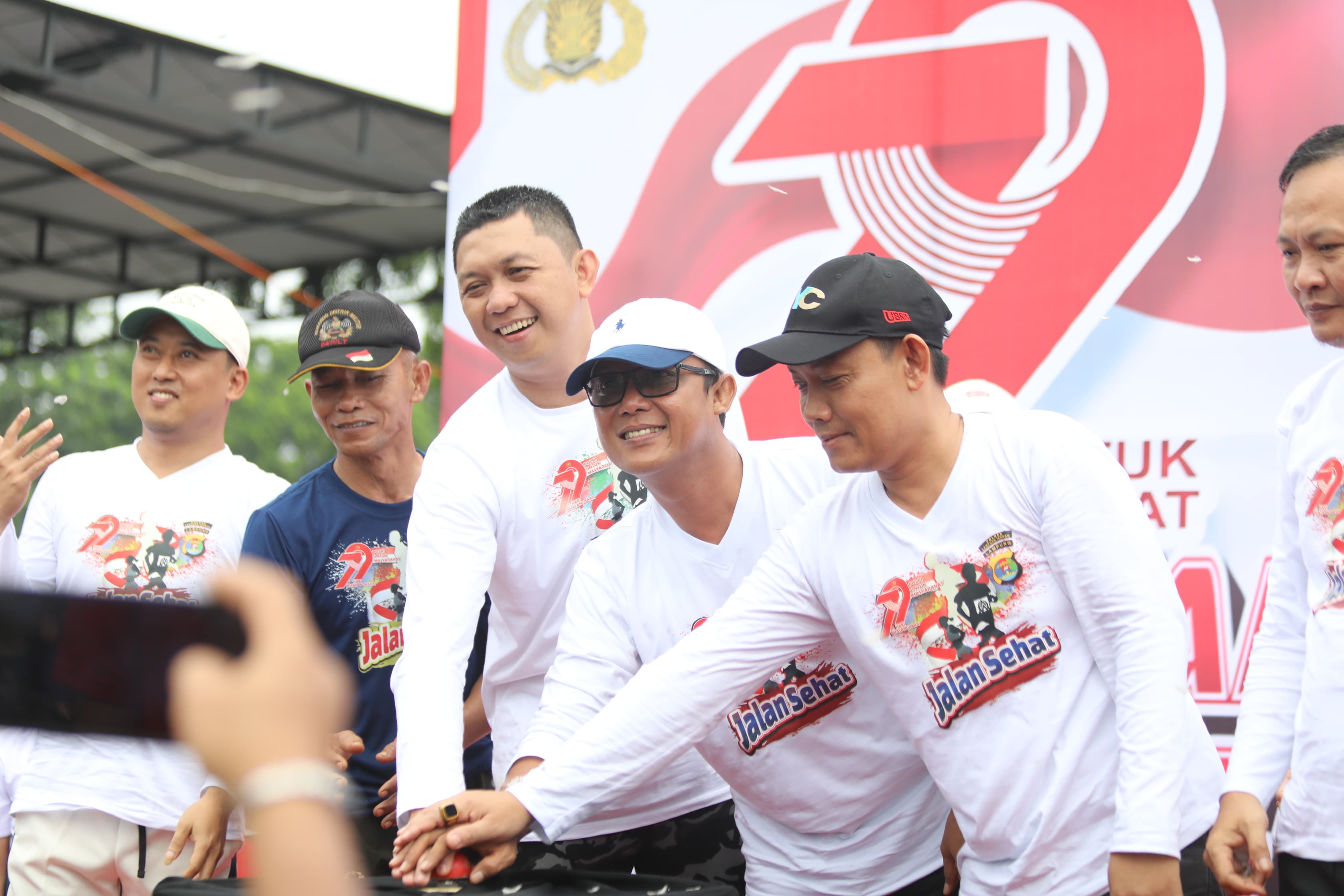 Bupati Ardito Wijaya menghadiri Jalan Sehat Bersama Masyarakat dalam rangka Hari Bhayangkara ke-79, yang dilaksanakan oleh Polres Lampung Tengah, bertempat di Taman Tugu Canang, Gunung Sugih. Acara ini disambut antusias dan berlangsung meriah, Minggu (29/6/2025). Bupati Ardito menyampaikan apresiasinya atas terselenggaranya kegiatan jalan sehat. Ia menilai, jalan sehat tidak hanya menjadi sarana silaturahmi antara Polri, pemerintah daerah, dan masyarakat, namun sebagai upaya membangun kesadaran hidup sehat serta mempererat persatuan. “Semoga semangat sinergi antara Polri dan seluruh elemen bangsa, khususnya di Kabupaten Lampung Tengah, semakin kuat demi terciptanya keamanan, ketertiban, dan kemajuan daerah yang kita cintai bersama. Dirgahayu Bhayangkara ke-79,” ujar Ardito Wijaya. Kegiatan yang diinisiasi oleh Polres Lampung Tengah ini berhasil menarik partisipasi ribuan peserta, mulai dari personel TNI-Polri, anggota Persit dan Bhayangkari, ASN, pelajar, hingga masyarakat umum. Nuansa kebersamaan dan semangat kebugaran mewarnai acara dari awal hingga akhir. (Diskominfotik Lampung Tengah)