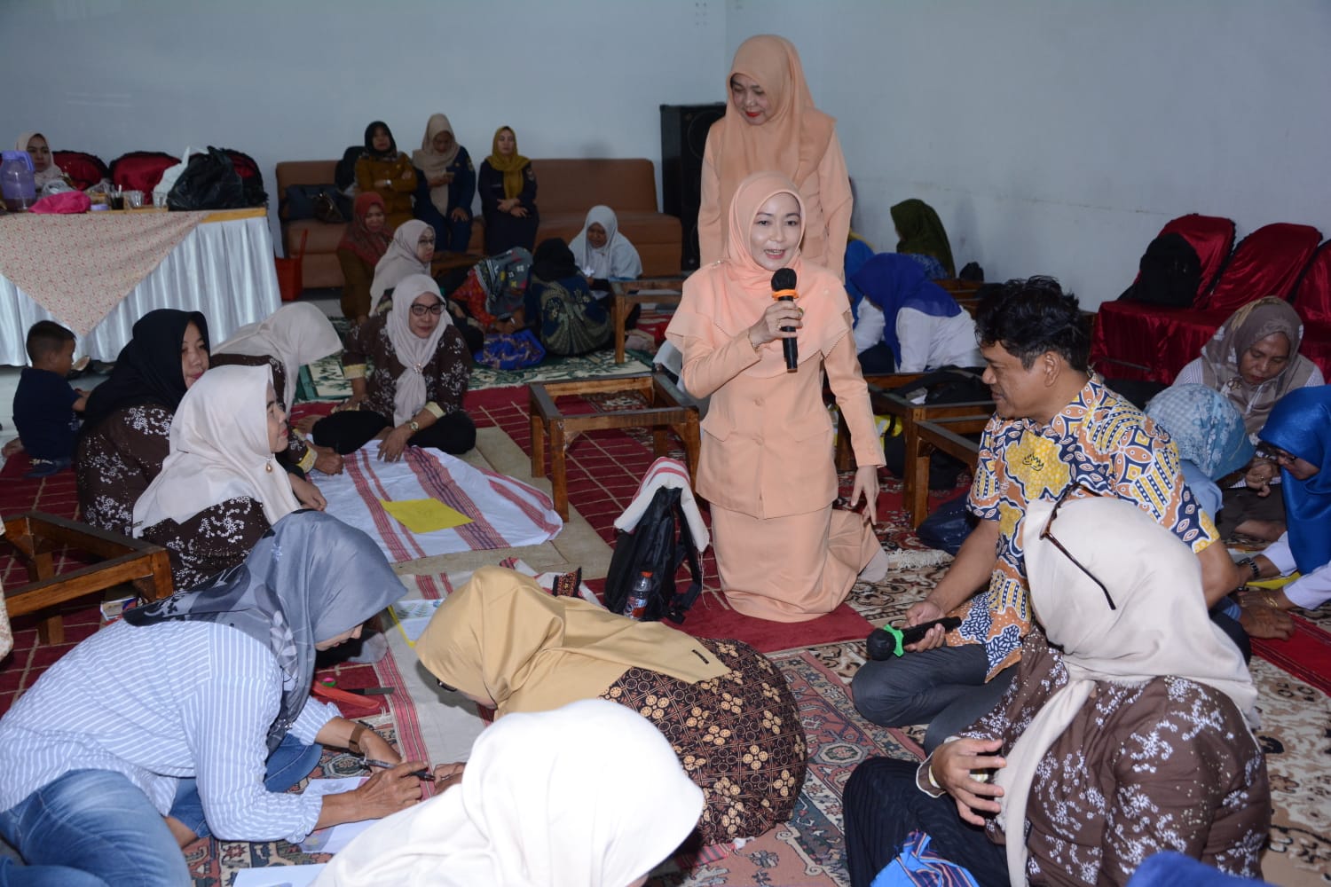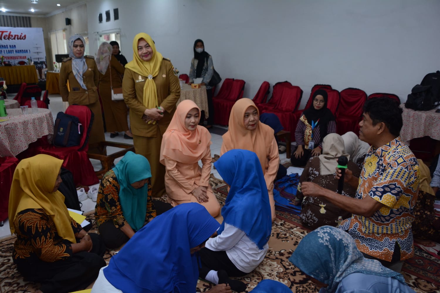 Pjs Ketua Dekranasda Kabupaten Lampung Tengah Elis Melinda Bobby Irawan Kunjungi Bimtek Menapis Dengan Berciri Khaskan Budaya Lampung Tengah Bermotif (Laut Handak), bertempat di Aula Rumah Makan Prambanan, Selasa 5 November 2024. Pjs Ketua Dekranasda Kabupaten Lampung Tengah hadir didampingi Ketua DWP Armalya Kusuma Riyadi dan disambut dengan pengalungan selendang oleh Kepala Dinas Perindustrian dan Perdagangan Thoherhan. Dalam kunjungannya Pjs Ketua Dekranasda Kabupaten Lampung Tengah memberikan semangat kepada para peserta dan siapa yang hasilnya paling bagus akan mendapatkan hadiah dan beliau berharap kegiatan ini hasilnya bisa bekerja sama dengan pemerintah daerah dan dapat mengisi pada event-event yang ada di Lampung Tengah maupun di Provinsi Lampung. (Diskominfotik Lampung Tengah)