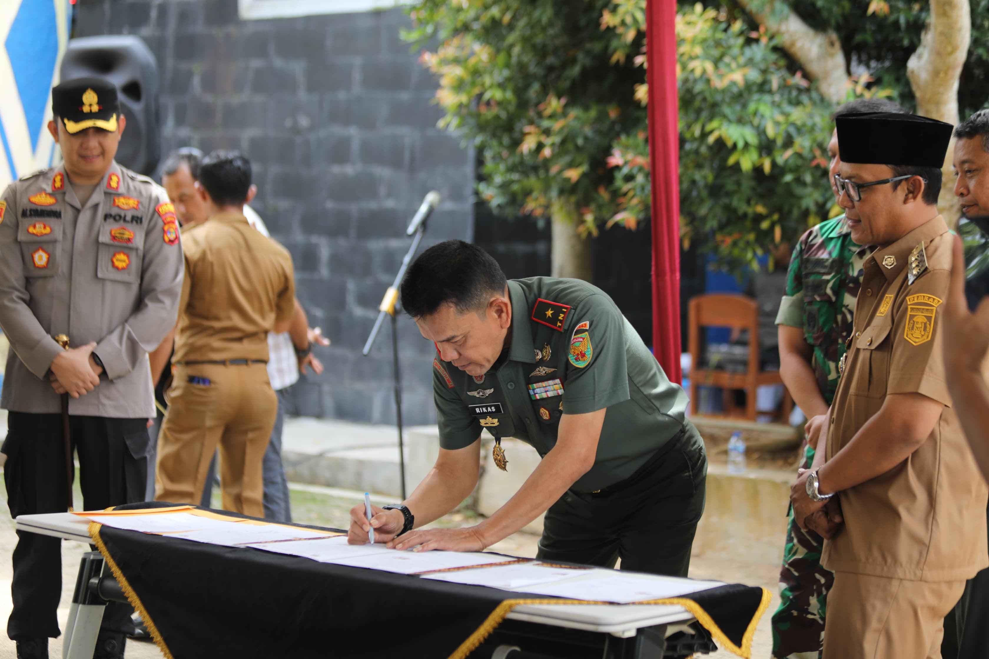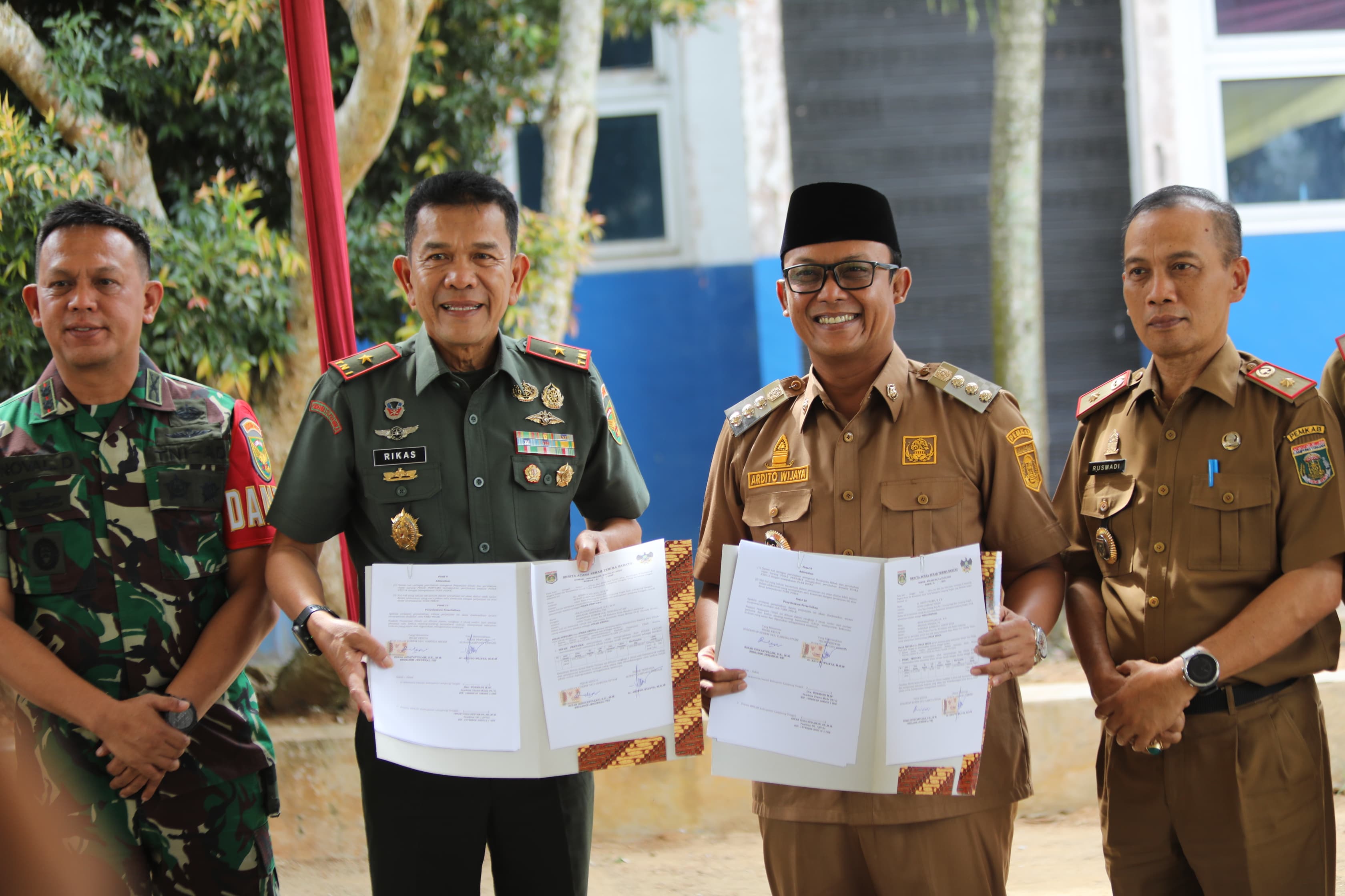 Melalui Penandatangan Naskah Perjanjian Hibah Daerah (NPHD) yang ditanda tangani oleh Bupati Lampung Tengah Ardito Wijaya dengan Danrem 043/Gatam Brigjen TNI Rikas Hidayatullah, Pemerintah Kabupaten Lampung Tengah Hibahkan lahan seluas ±1400 M2 kepada Komando Resor Militer 043/Garuda Hitam yang terletak di Kampung Negara Bumi Ilir, Kecamatan Anak Tuha. Penandatangan tersebut dilaksanakan di SMK Unggulan Kecamatan Anak Tuha, Selasa (10/6/2025). Pada acara tersebut, Bupati Ardito Wijaya menyampaikan kegiatan yang kita laksanakan ini adalah bukti nyata hasil kemitraan antara Pemerintah dan TNI dalam menyatukan tujuan dan pandangan serta komitmen bersama dalam membangun daerah khususnya Kabupaten Lampung Tengah. Bupati Ardito Wijaya berharap dengan dilaksanakannya kegiatan ini, dapat meningkatkan sinergisitas antara Pemerintah Kabupaten Lampung Tengah dengan TNI, sehingga TNI dapat mewujudkan penyelenggaraan penegakan disiplin, hukum dan tata tertib di lingkungan Kabupaten Lampung Tengah, memberikan pelayanan, keamanan dan kenyamanan bagi masyarakat khususnya Kabupaten Lampung Tengah. Bupati Ardito juga yakin jika Pemerintah Kabupaten Lampung Tengah, TNI, serta masyarakat dapat berkolaborasi dengan baik, insyaallah kita akan dapat mengatasi semua permasalahan dengan lebih mudah sehingga kita dapat mewujudkan Lampung Tengah maju, berdaya saing, sejahtera, berkelanjutan, adil, dan makmur. (Diskominfotik Lampung Tengah)