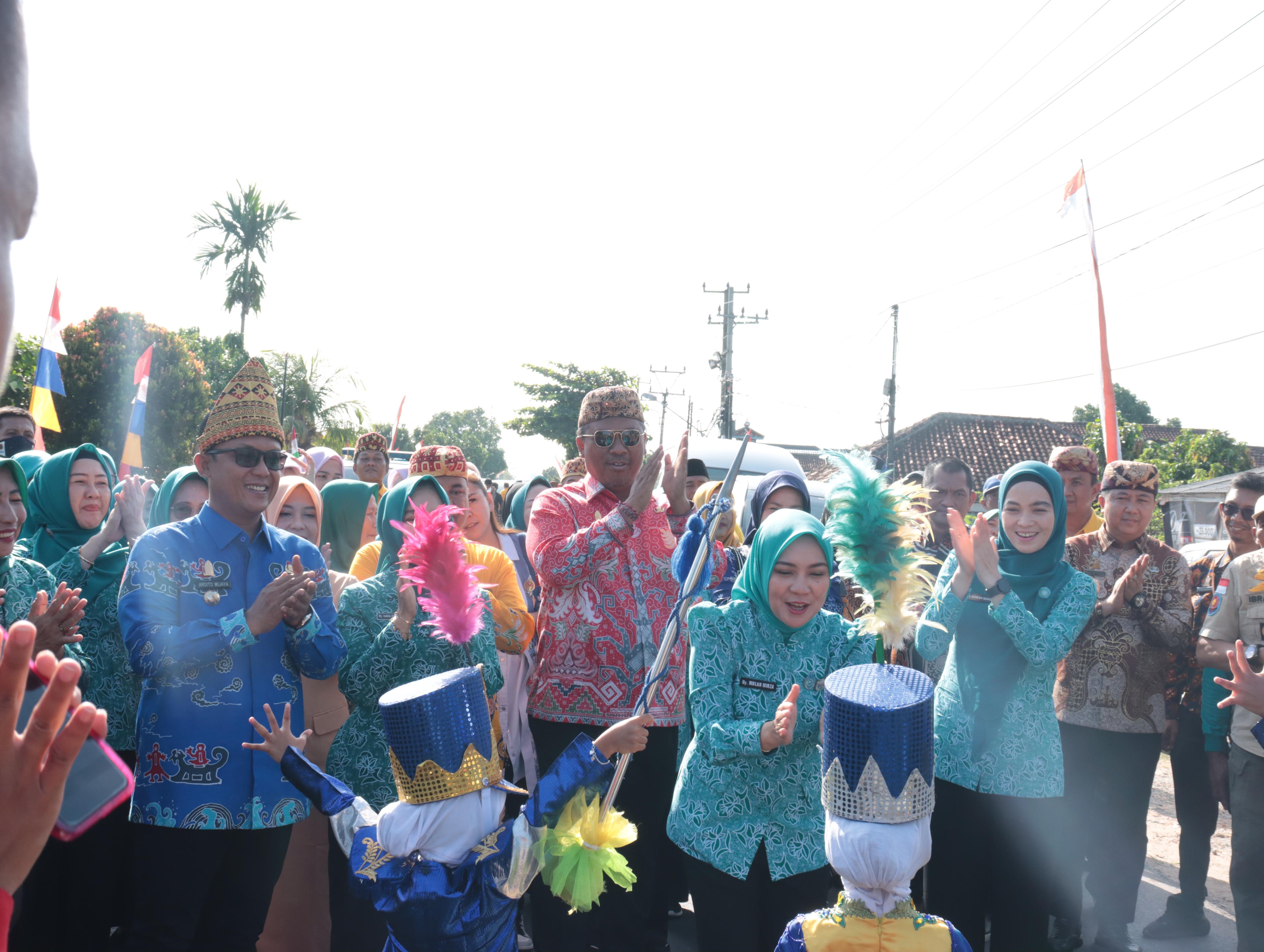 Bupati Ardito Wijaya bersama Wakil Bupati I Komang Koheri menyambut kunjungan kerja Ketua Tim Penggerak PKK Provinsi Lampung, Purnama Wulan Sari Mirzani bersama jajarannya di Kampung Bumi Kencana, Kecamatan Seputih Agung. Jum'at (18/7/2025). Hadir juga dalam acara tersebut antara lain, Jajaran Forkopimda Lampung Tengah, Ketua TP PKK Lampung Tengah, Indria Sudrajat Ardito Wijaya, Sekretaris Daerah Kabupaten Lampung Tengah, Welly Adi Wantra, Ketua Dharma Wanita Persatuan LampungTengah, dr. Dwi Evayati, Para Staf Ahli Bupati, Asisten, Kepala Perangkat Daerah dan Camat se - Lampung Tengah.Kunjungan Kerja Ketua TP PKK Provinsi Lampung, Purnama Wulan Sari dalam rangka mencanangkan Kampung Bumi Kencana sebagai Desa Tapis (Desa Kesejahteraan Keluarga untuk Lampung Maju Indonesia Emas) Bupati Ardito Wijaya menyampaikan kunjungan ini menjadi momentum penting untuk mempererat tali silaturahmi, sekaligus sebagai ajang untuk bertukar pikiran dan pengalaman dalam upaya meningkatkan kesejahteraan masyarakat, khususnya melalui program-program PKK."Kabupaten Lampung Tengah, sebagai bagian dari Provinsi Lampung, terus berupaya untuk mewujudkan visi pembangunan daerah yang berkelanjutan. dalam hal ini, peran Tim Penggerak PKK sangatlah vital. TP PKK, sebagai organisasi kemasyarakatan yang berfokus pada pemberdayaan keluarga, memiliki peran strategis dalam mendukung program-program Pemerintah Daerah Kabupaten Lampung Tengah, "ucap Ardito. Sementara itu, Ketua TP PKK Provinsi Lampung, Batin Wulan sapaan akrabnya mengatakan bahwa kunjungan kerja pada hari ini di Kabupaten Lampung Tengah merupakan bagian dari implementasi program pokok PKK Provinsi Lampung berbasis desa dan kelurahan dari 15 kabupaten/kota di Provinsi Lampung, dimana Kampung Bumi Kencana terpilih sebagai Desa TAPIS yang merupakan Desa Binaan Tim Penggerak PKK Provinsi Lampung.“Dipilihnya Kabupaten Lampung Tengah sebagai Desa Tapis binaan TP.PKK Provinsi Lampung karena memiliki kesiapan infrastruktur, kualitas SDM yang baik, dan komitmen tinggi dari pemerintah daerah serta TP-PKK dalam mendukung berbagai program pembangunan keluarga yang dapat menjadi contoh sinergi antara PKK, pemerintah, dan masyarakat dalam mendorong satu langkah yang strategis khususnya kaum perempuan, kaum ibu-ibu mulai dari elemen paling terdekat maupun paling kecil tetapi mempunyai peran yang sangat penting yaitu keluarga,” tutur Wulan. (Diskominfotik Lampung Tengah)