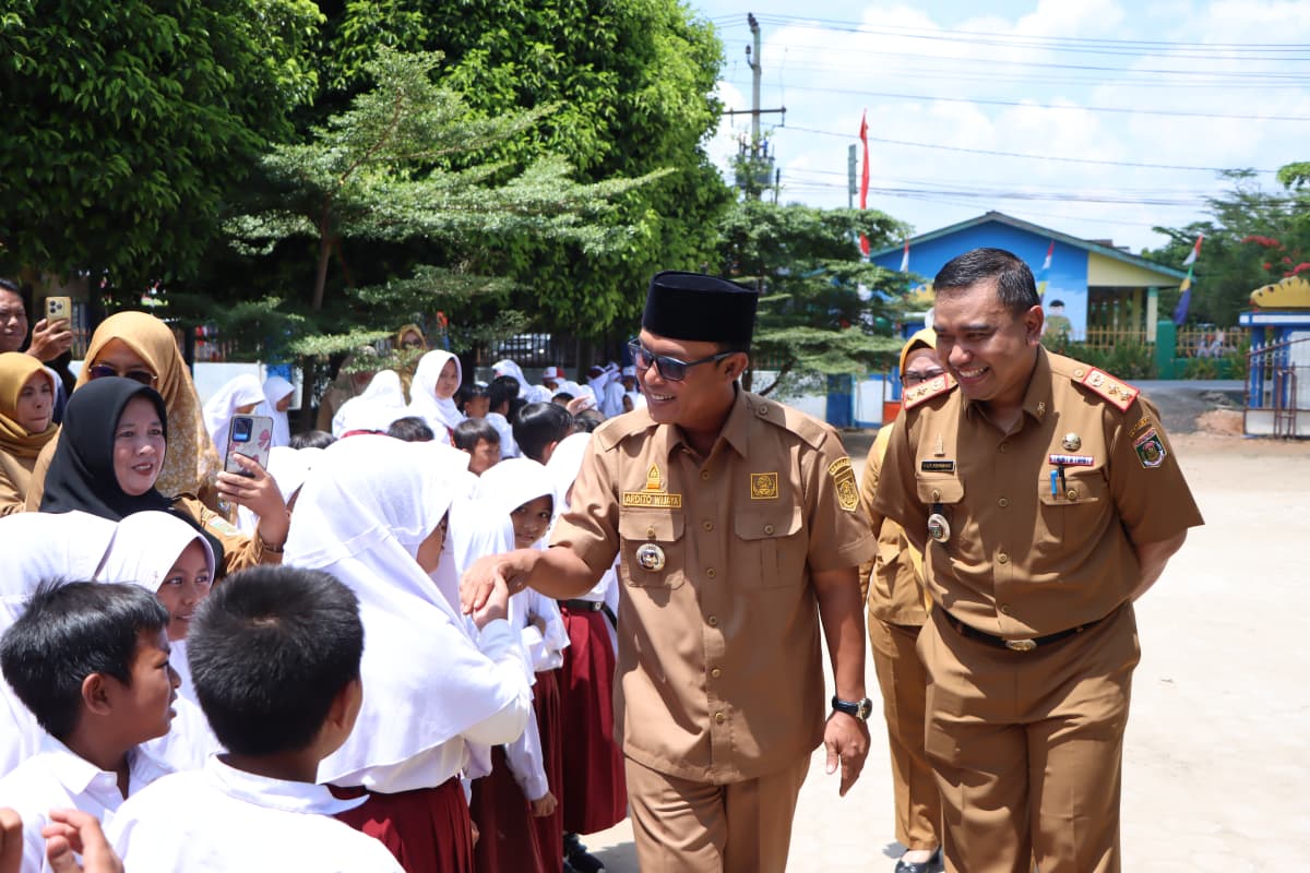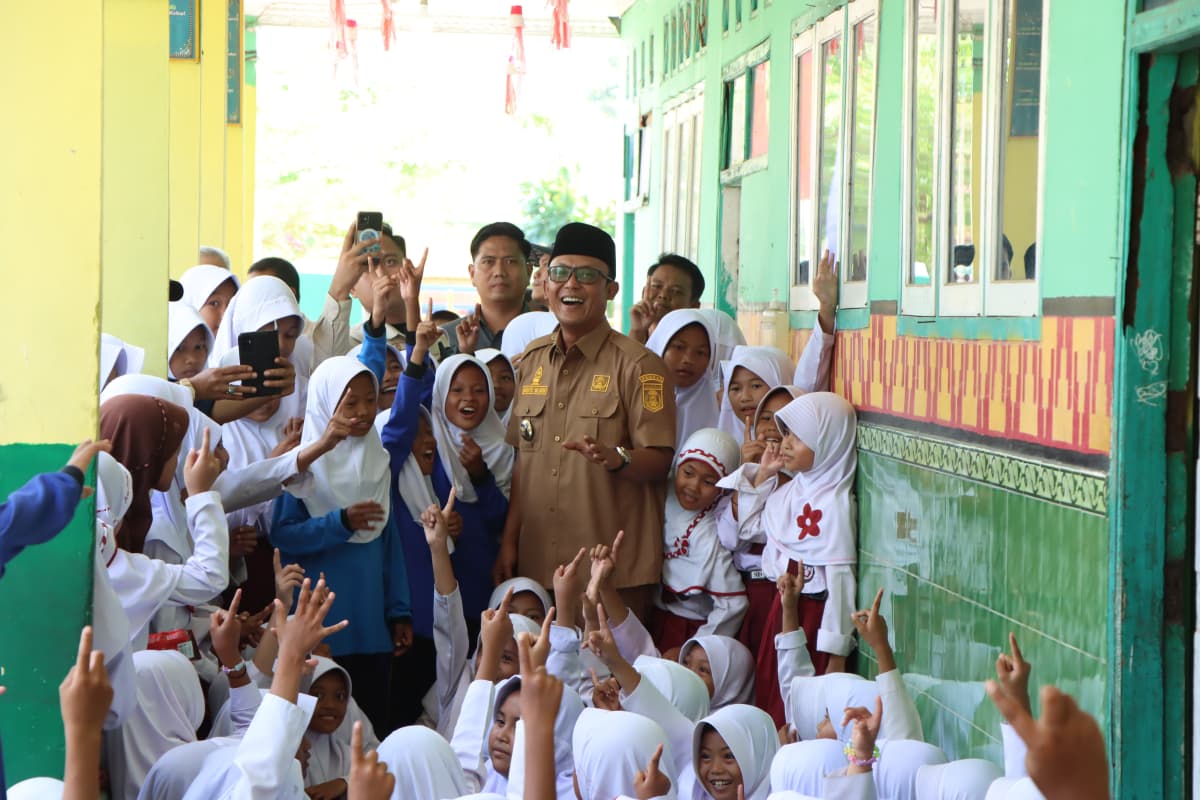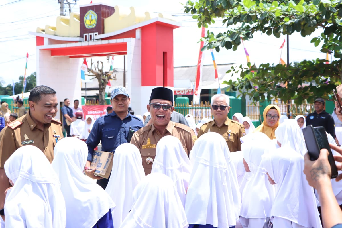 Bupati Lampung Tengah, Ardito Wijaya, melakukan kunjungan ke Sekolah Dasar Negeri (SDN) 1 Adi Jaya dan SDN 2 Adi Jaya, Kecamatan Terbanggi Besar, pada Senin (25/08/2025). Kehadiran bupati disambut antusias oleh para siswa, guru, serta masyarakat sekitar. Dalam kegiatan tersebut, Bupati Ardito didampingi oleh Kepala Dinas Pendidikan dan Kebudayaan Lampung Tengah, Nur Rohman. Kunjungan ini merupakan bentuk perhatian pemerintah daerah terhadap dunia pendidikan sekaligus memberikan stimulus semangat belajar bagi para siswa sekolah dasar. Bupati Ardito menyampaikan bahwa pembagian susu kepada siswa merupakan salah satu implementasi sekaligus dukungan terhadap program-program unggulan pemerintah pusat. “Harapan kita bersama, melalui program ini akan lahir generasi yang sehat, cerdas, dan berdaya saing untuk masa depan Lampung Tengah yang lebih baik,” ujar Bupati Ardito. Pemerintah Kabupaten Lampung Tengah terus berkomitmen mendorong peningkatan kualitas pendidikan, baik melalui penyediaan sarana prasarana maupun program-program yang mendukung tumbuh kembang anak. (Diskominfotik Lampung Tengah)