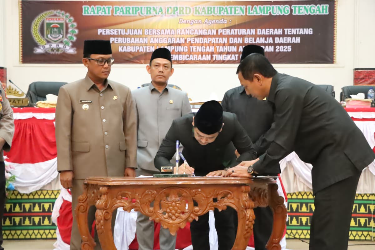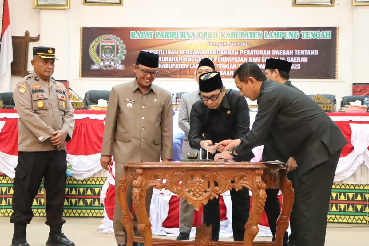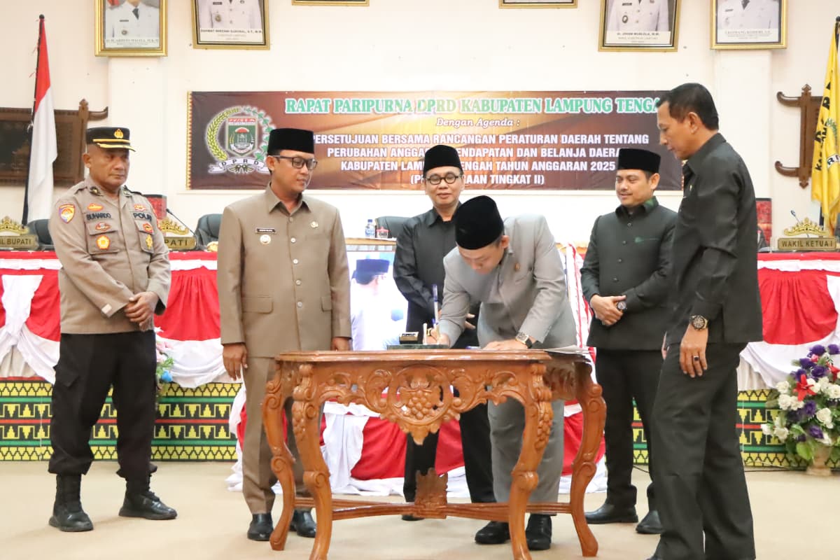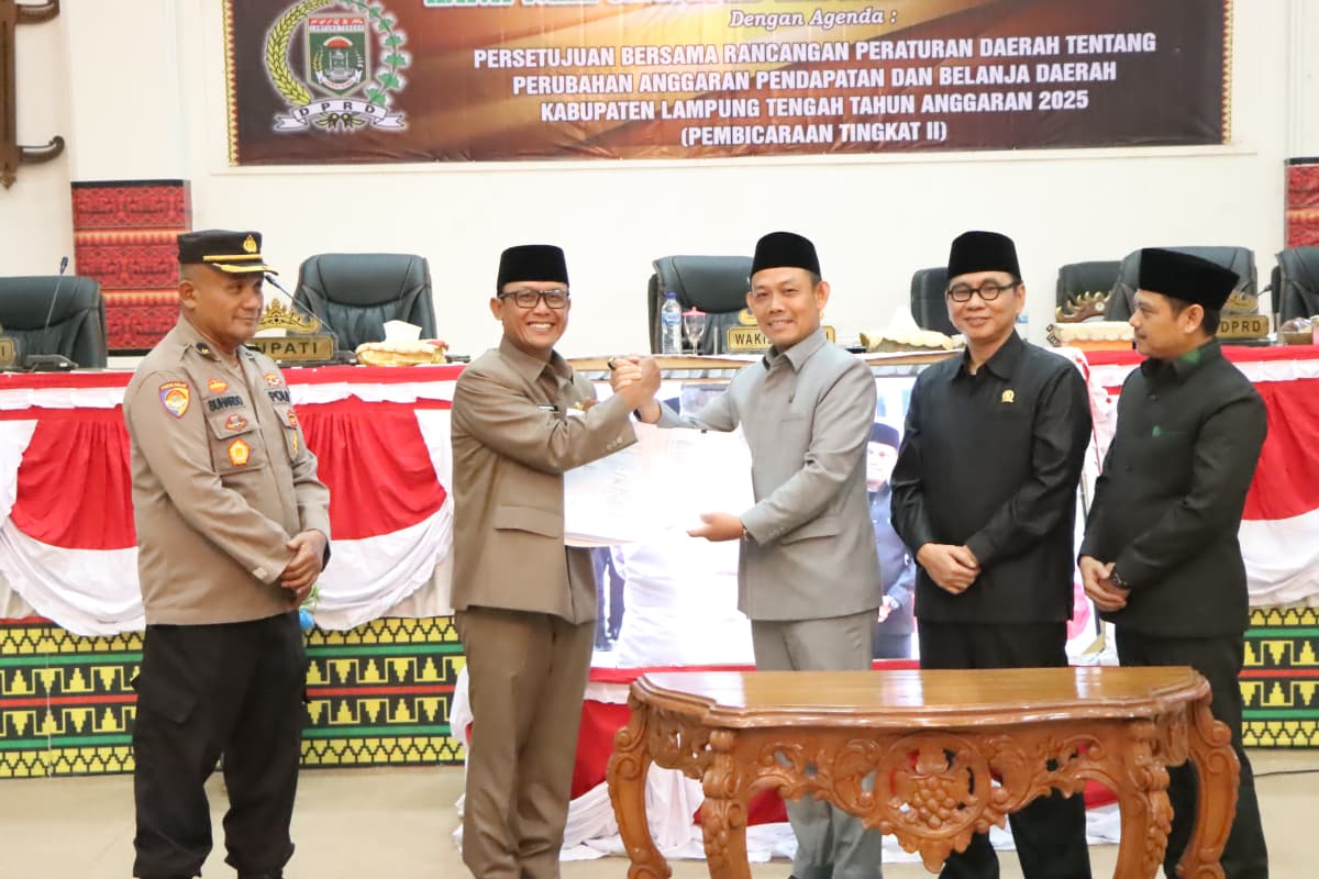 Bupati Lampung Tengah, Ardito Wijaya, menghadiri Rapat Paripurna DPRD Kabupaten Lampung Tengah dalam rangka persetujuan bersama Rancangan Peraturan Daerah tentang Perubahan APBD Tahun Anggaran 2025. Rapat berlangsung di Ruang Rapat Paripurna DPRD Kabupaten Lampung Tengah, Gunung Sugih. Kamis (21/08/2025). Dalam sambutannya, Bupati Ardito Wijaya menyampaikan apresiasi atas sinergi dan kerja sama antara eksekutif dan legislatif dalam membahas perubahan APBD Tahun Anggaran 2025. “Perubahan APBD yang telah disepakati bersama ini merupakan upaya untuk menyesuaikan kebijakan keuangan daerah dengan perkembangan dan kebutuhan pembangunan yang dinamis. Saya berharap, melalui persetujuan ini, pelaksanaan program pembangunan dapat lebih efektif, tepat sasaran, serta memberikan manfaat nyata bagi masyarakat Lampung Tengah” ujar Bupati Ardito. Lebih lanjut, Bupati menekankan pentingnya transparansi dan akuntabilitas dalam pengelolaan anggaran daerah. Ia juga mengajak seluruh jajaran pemerintah daerah dan DPRD untuk terus mengutamakan kepentingan masyarakat dalam setiap kebijakan yang diambil. “Mari kita jaga komitmen bersama dalam mewujudkan pembangunan yang merata, meningkatkan kesejahteraan rakyat, serta memperkuat fondasi Lampung Tengah sebagai daerah yang maju dan berdaya saing,” tambahnya. Rapat Paripurna tersebut dihadiri pimpinan dan anggota DPRD Kabupaten Lampung Tengah, Forkopimda, serta para pejabat di lingkungan Pemerintah Kabupaten Lampung Tengah. (Diskominfotik Lampung Tengah)