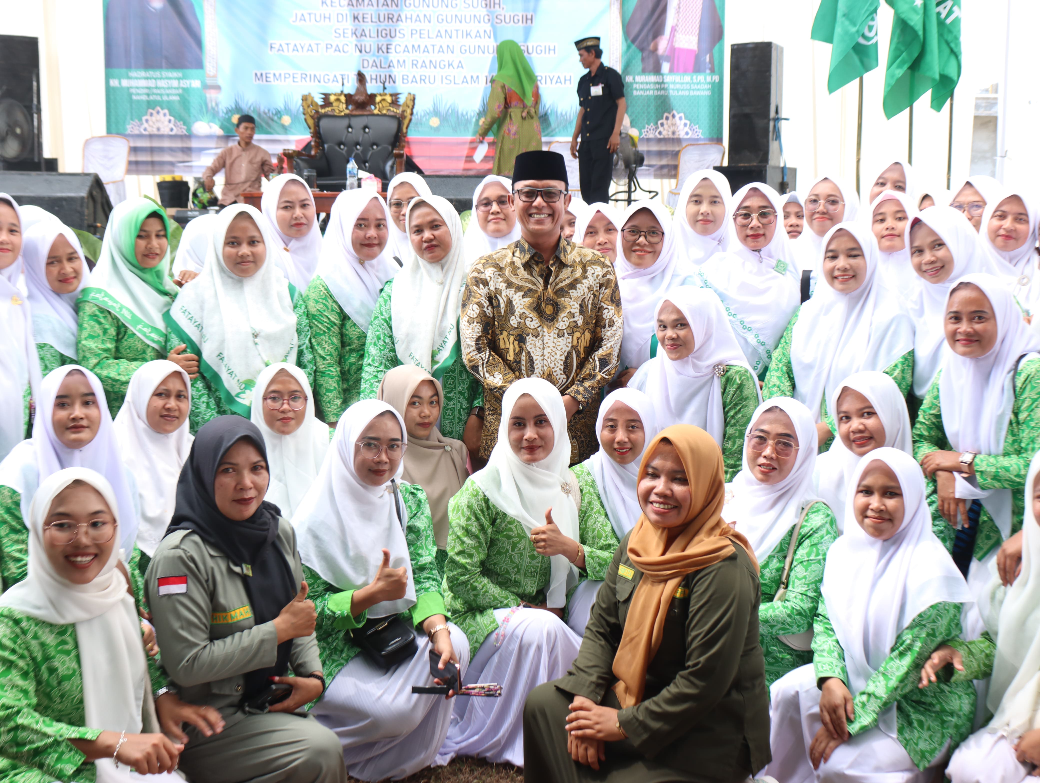 Bupati Lampung Tengah, Ardito Wijaya, menghadiri pengajian Minggu Kliwon yang diselenggarakan oleh Majelis Wakil Cabang Nahdlatul Ulama (MWC NU) dan Muslimat NU Kecamatan Gunung Sugih. Acara berlangsung di Banjar Mulyo, Kelurahan Gunung Sugih, pada Minggu (27/07/2025). Selain Bupati Ardito Wijaya, hadir pula anggota DPRD Provinsi Lampung, Abdullah Surajaya; anggota DPRD Kabupaten Lampung Tengah, Indra Jaya; penceramah KH. Nurahmad Sayfulloh dari Tulang Bawang; Camat Gunung Sugih serta Lurah Gunung Sugih. Dalam sambutannya, Bupati Ardito Wijaya menyampaikan apresiasi atas terselenggaranya pengajian yang menjadi ajang silaturahmi sekaligus mempererat ukhuwah Islamiyah di kalangan masyarakat. “Pengajian seperti ini sangat penting untuk memperkuat keimanan dan menjaga kerukunan antarwarga. Saya berharap kegiatan keagamaan ini terus lestari dan menjadi pilar dalam pembangunan karakter bangsa,” ujarnya. Bupati juga mengajak seluruh warga untuk terus aktif dalam kegiatan keagamaan sebagai bagian dari upaya memajukan masyarakat yang berakhlak dan harmonis. (Diskominfotik Lampung Tengah)
