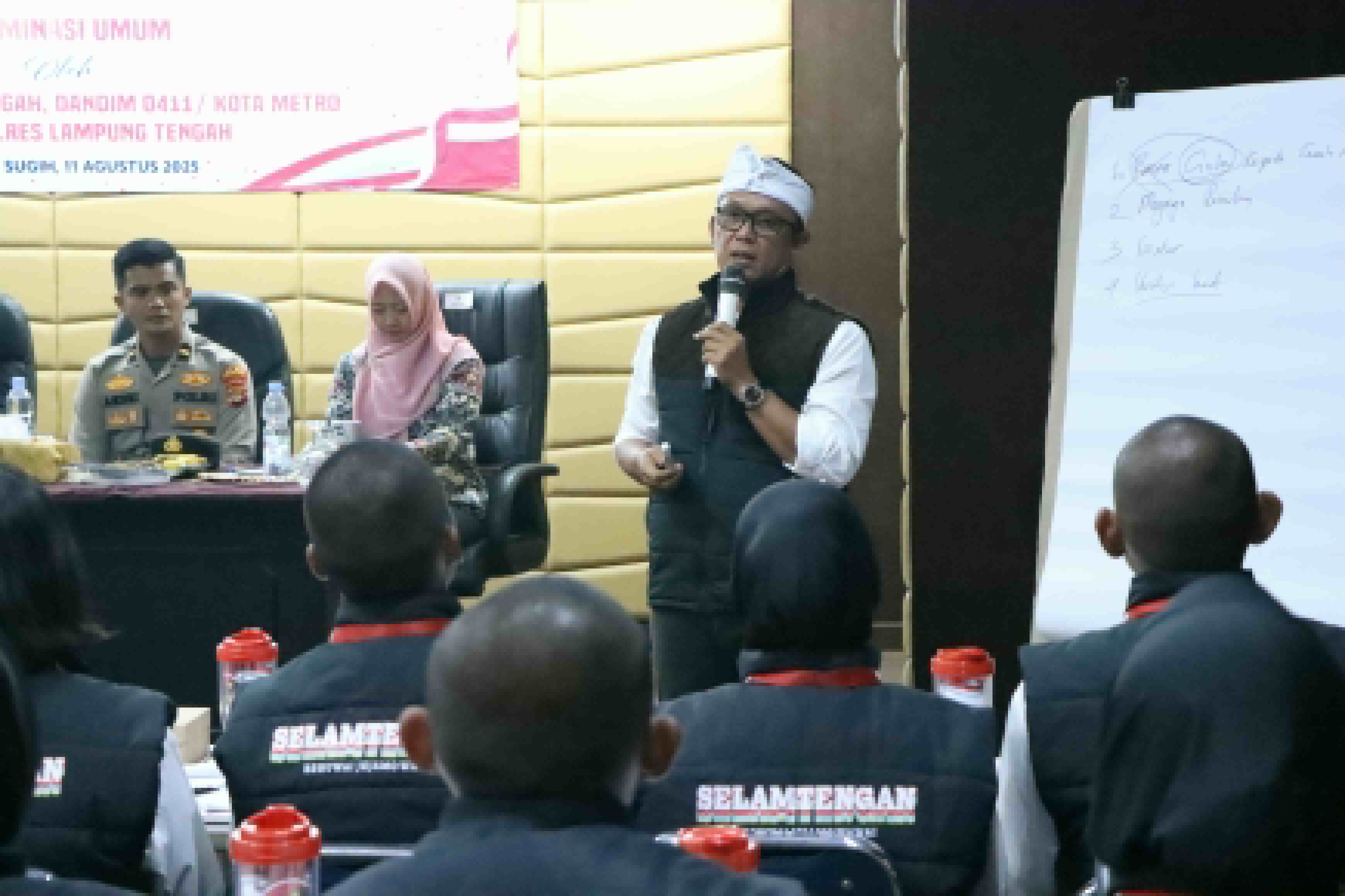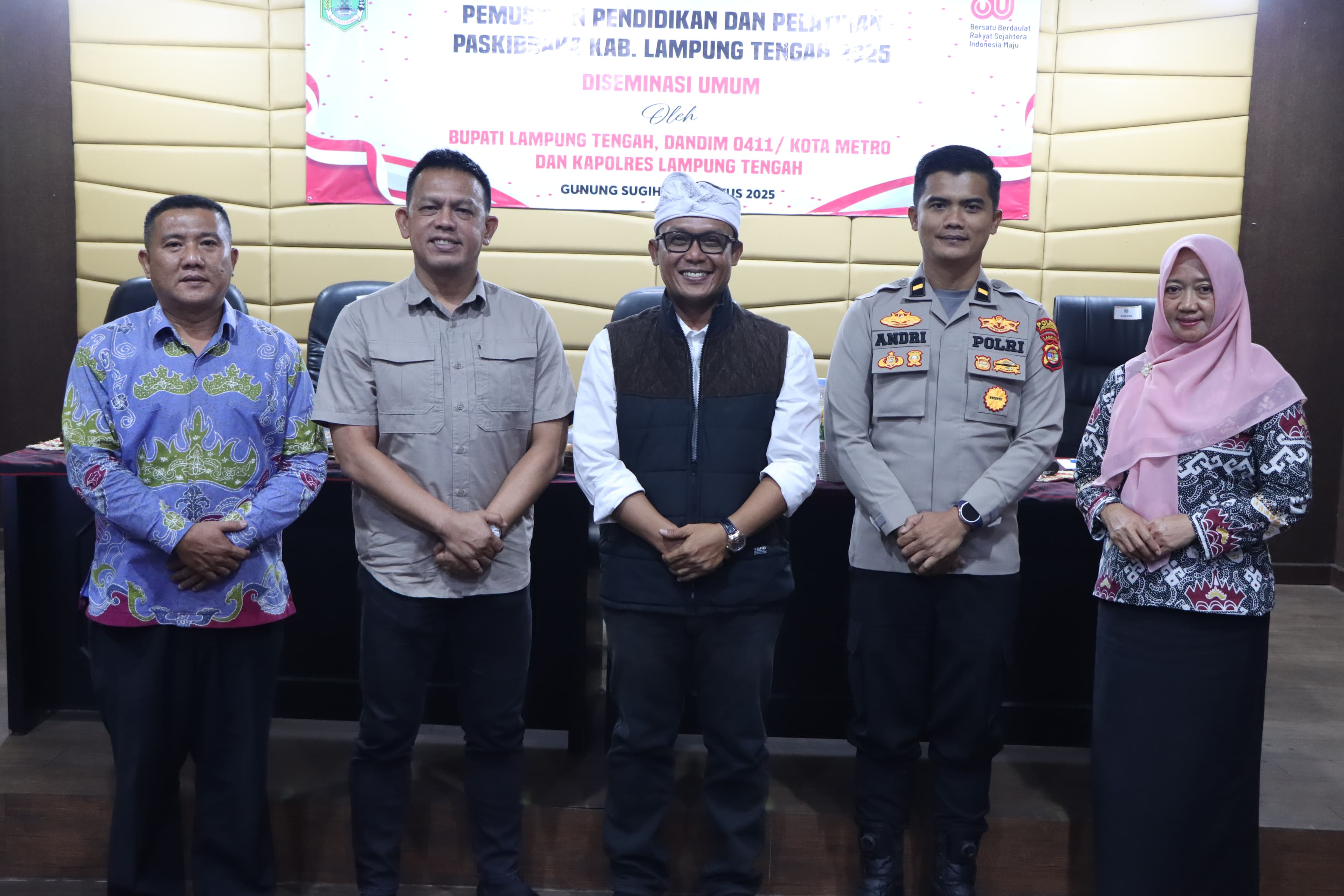 Bupati Lampung Tengah, Ardito Wijaya, menjadi narasumber dalam kegiatan Pendidikan dan Pelatihan (Diklat) Calon Pasukan Pengibar Bendera Pusaka (Paskibraka) Kabupaten Lampung Tengah Tahun 2025 yang dilaksanakan di Ruang BJW, Komplek Rumah Dinas Bupati Lampung Tengah, pada Senin (11/08/2025) malam. Dalam paparannya, Bupati Ardito Wijaya menyampaikan materi mengenai wawasan kebangsaan, yang bertujuan untuk menanamkan nilai-nilai nasionalisme, semangat persatuan, serta cinta tanah air kepada para calon Paskibraka. Beliau juga berpesan agar para peserta dapat mengikuti seluruh rangkaian diklat dengan serius dan disiplin tinggi, karena mereka akan menjadi simbol generasi muda yang mengemban tanggung jawab besar dalam upacara Hari Kemerdekaan Republik Indonesia. Turut hadir sebagai narasumber dalam kegiatan ini, Komandan Kodim 0411/KM, Letkol Inf. Noval Darmawan, yang menyampaikan materi tentang bahaya kenakalan remaja, serta perwakilan dari Polres Lampung Tengah, Andriansyah, yang memaparkan materi mengenai bahaya penyalahgunaan narkotika di kalangan generasi muda. Selain itu, kegiatan ini juga dihadiri oleh Plt. Asisten Bidang Pemerintahan Sekretariat Daerah Kabupaten Lampung Tengah, Candra Puasati, dan Kepala Badan Kesatuan Bangsa dan Politik (Kesbangpol) Lampung Tengah, Yasir Asromi, A.P. Kegiatan Diklat ini merupakan bagian penting dari proses pembentukan karakter dan kedisiplinan para calon Paskibraka, yang tidak hanya akan bertugas sebagai pengibar bendera pada peringatan HUT ke-80 Kemerdekaan RI, tetapi juga diharapkan menjadi teladan bagi generasi muda lainnya di Lampung Tengah. (Diskominfotik Lampung Tengah)