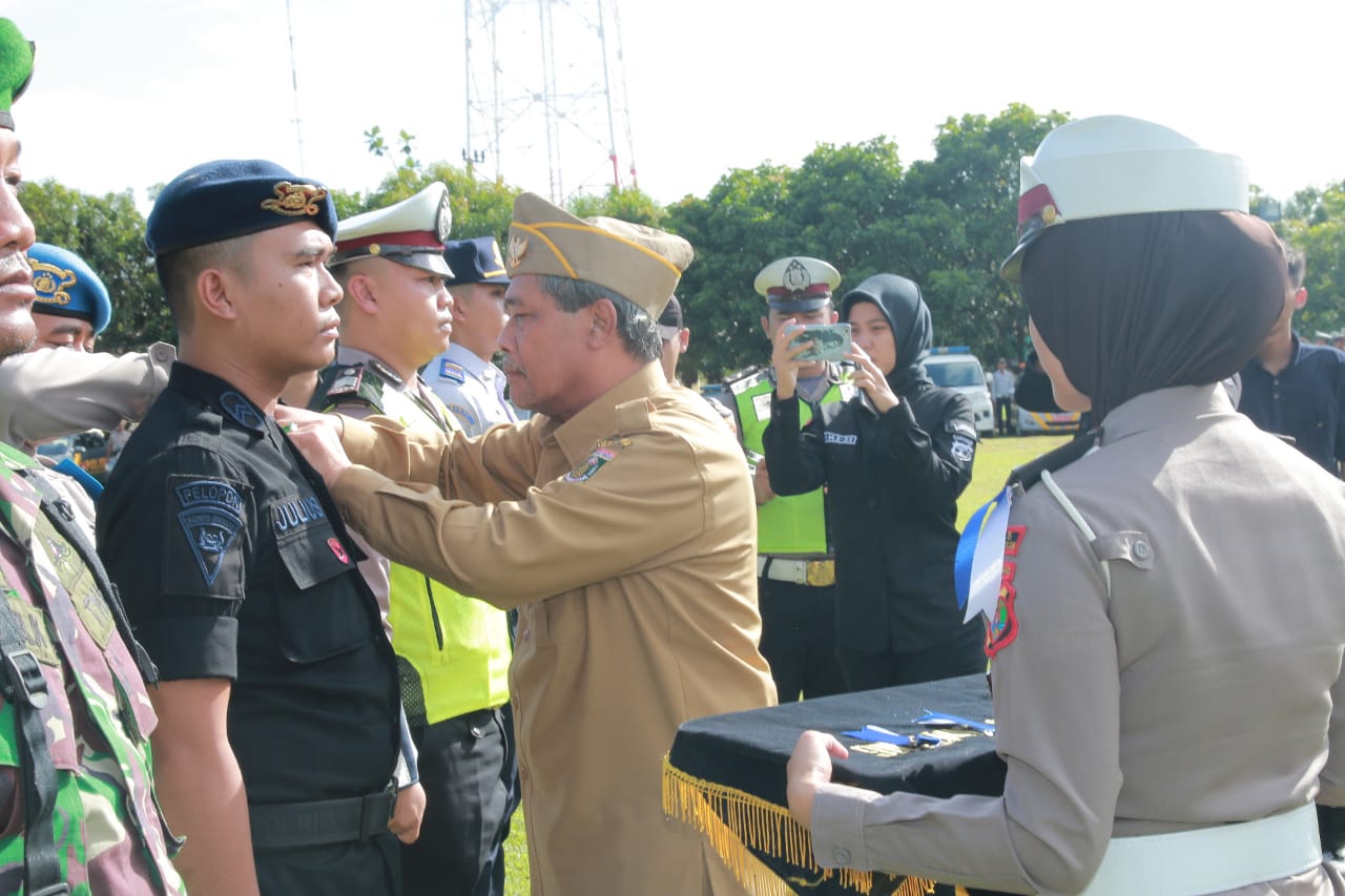 GUNUNG SUGIH - RAPEMDA 92,8 FM Bupati Lampung Tengah Loekman Djoyosoemarto senin 06 Mei 2019, Memimpin Apel Gelar Pasukan Keselamatan Krakatau 2019, di lapangan Mapolres Lampung Tengah.