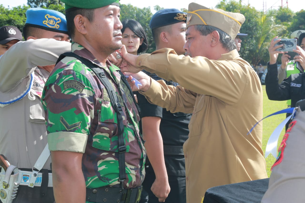 Apel yang ditandai dengan penyematan tanda ops kepada perwakilan yang disematkan secara langsung oleh bupati lampung tengah loekman djoyosoemarto berjalan dengan hikmat dan lancar