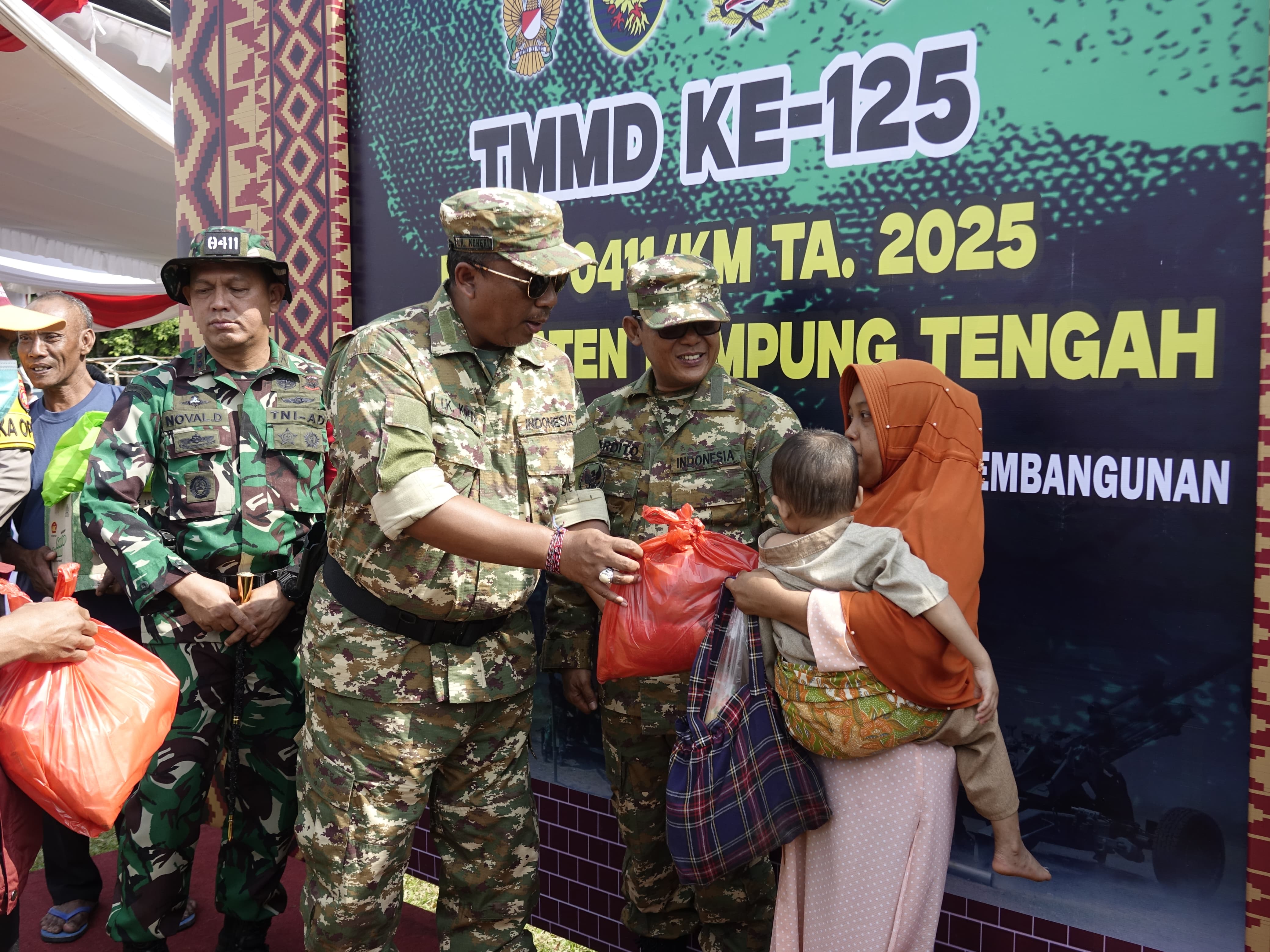 Lampung Tengah, 23 Juli 2025 – Bupati Lampung Tengah, Ardito Wijaya, secara resmi membuka kegiatan TNI Manunggal Membangun Desa (TMMD) ke-125 Tahun 2025 yang berlokasi di Kampung Sukanegara, Kecamatan Bangunrejo, Rabu (23/7). Kegiatan ini merupakan sinergi antara pemerintah daerah dan TNI dalam rangka percepatan pembangunan desa serta peningkatan kesejahteraan masyarakat. Bupati Ardito Wijaya menyampaikan apresiasi tinggi kepada jajaran TNI yang terus berkomitmen membantu pembangunan di daerah pedesaan melalui program TMMD. Menurutnya, kegiatan ini tidak hanya membangun infrastruktur, tetapi juga memperkuat semangat gotong royong dan rasa cinta tanah air di kalangan masyarakat. “TMMD adalah bukti nyata bahwa TNI hadir bersama rakyat. Kami sangat berterima kasih atas kolaborasi ini. Melalui program ini, pembangunan fisik dan nonfisik bisa berjalan beriringan,” ujar Bupati Ardito. TMMD ke-125 di Kampung Sukanegara akan berlangsung selama satu bulan dan mencakup pembangunan jalan penghubung antar dusun, perbaikan jembatan, serta renovasi rumah tidak layak huni. Selain itu, juga digelar penyuluhan kesehatan, wawasan kebangsaan, dan kegiatan sosial lainnya. Komandan Kodim 0411/KM, Letkol Inf. Noval Darmawan, menyatakan bahwa TMMD ke-125 mengangkat tema “Dengan Semangat TMMD Mewujudkan Pemerataan Pembangunan dan Ketahanan Nasional di Wilayah”. Ia menegaskan bahwa seluruh personel TNI yang terlibat siap bersinergi dengan masyarakat dan pemerintah daerah demi suksesnya program ini. Turut hadir dalam acara pembukaan, Wakil Bupati, I Komang Koheri, Ketua DPRD Lampung Tengah, Febriyantoni, Kapolres Lampung Tengah, AKBP. Alsyahendra, Sekda Lampung Tengah, Welly Adi Wantra, Para Kepala Perangkat Daerah terkait dilingkungan Pemkab Lampung Tengah, tokoh masyarakat, tokoh agama, dan Kepala Kampung dan warga Kampung Sukanegara yang antusias menyambut kegiatan ini. Dengan dibukanya TMMD ke-125 ini, diharapkan pembangunan di wilayah terpencil dapat semakin dipercepat, serta meningkatkan kualitas hidup dan kesejahteraan masyarakat Lampung Tengah, khususnya di Kecamatan Bangunrejo. (Diskominfotik Lampung Tengah)