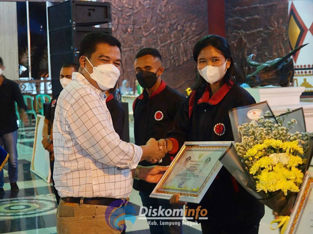 Bupati Lampung Tengah Musa Ahmad pada Hari Sabtu 30 Oktober 2021 memberikan Penghargaan Kepada Atlet Berprestasi yang membawa harum nama Kabupaten Lampung Tengah di Tingkat Nasional bertempat di Sesat Agung Nuwo Balak. Para Atlet Berprestasi itu terdiri dari Atlet Hapkido yang berlaga di PON XX Papua 2021,Para Pekerja Seni Lukis dan Findi yang berhasil Menjuarai Juara 1 Dangdut Bintang Pantura 6 yang di selenggarakan salah satu Stasiun Tv Swasta Indonesia. Momen yang bertepatan dengan Hari Sumpah Pemuda tersebut merupakan ucapan terima kasih Pemerintah Daerah Kepada Atlet dan Para Pemuda/i yang telah berjuang untuk Membawa harum Kabupaten Lampung Tengah. yang di kemas secara sederhana tersebut tetap menerapkan Protokol Kesehatan. Bupati Musa Ahmad mengucapkan terima kasih atas presetasi yang telah di capai dan membawa harum nama Lampung Tengah di Tingkat Nasional. Prestasi tersebut harus dipertahankan dan ditingkatkan di momen - momen berikutnya sehingga bisa menjadi momen yang bersejarah bagi pribadi dan Lampung Tengah. Acara tersebut di hadiri Oleh Ketua DPRD Lampung Tengah, Kepala Perangakat Daerah/Kepala Bagian, Para Camat serta seluruh Kepala Puskesmas se-Kabupaten Lampung Tengah. (Diskominfo Kabupaten Lampung Tengah)