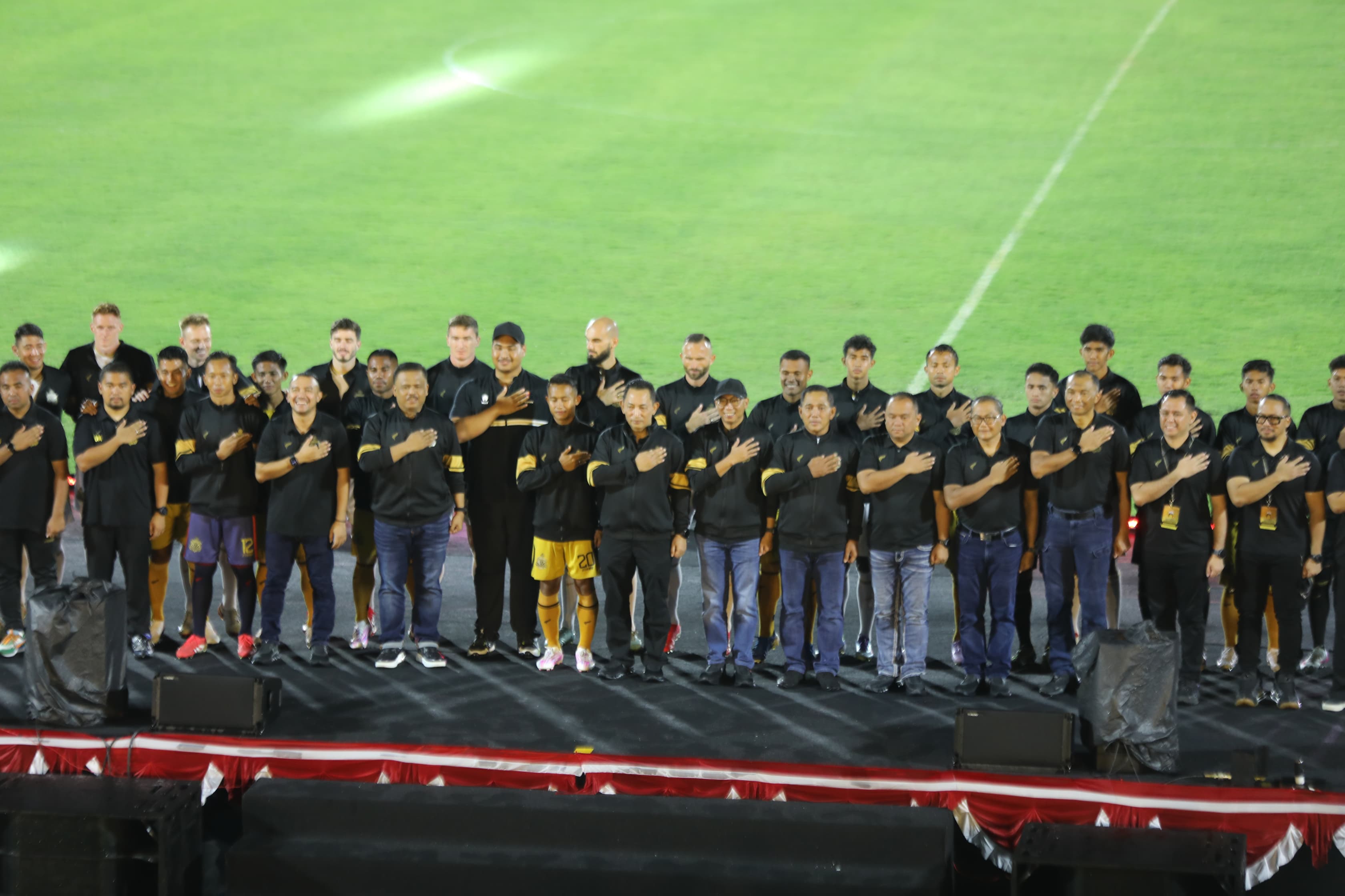 Bupati Lampung Tengah, Ardito Wijaya, bersama Ketua Tim Penggerak PKK Kabupaten Lampung Tengah, Indria Sudrajat Ardito Wijaya, menghadiri acara launching klub sepakbola Bhayangkara Presisi Lampung FC, yang digelar meriah di Stadion Sumpah Pemuda, Bandar Lampung. Bertempat di Stadion Sumpah Pemuda PKOR Way Halim, Bandar Lampung. Senin (28/07/2025) malam. Acara tersebut dihadiri langsung oleh Kepala Kepolisian Republik Indonesia (Kapolri), Jenderal Polisi Listyo Sigit Prabowo, Menteri Pemuda dan Olahraga (Menpora), Dito Ariotedjo, Gubernur Lampung, Rahmat Mirzani Djausal, serta jajaran Forkopimda Provinsi Lampung dan para kepala daerah kabupaten/kota se-Provinsi Lampung. Dalam sambutannya, Kapolri Jenderal Listyo Sigit Prabowo menyampaikan bahwa kehadiran Bhayangkara Presisi Lampung FC bukan hanya sebagai klub profesional yang berkompetisi di liga nasional, tetapi juga sebagai sarana pembinaan generasi muda melalui olahraga, khususnya sepakbola. Ia berharap kehadiran klub ini dapat menjadi kebanggaan masyarakat Lampung dan menciptakan sinergi positif antara institusi kepolisian dan masyarakat luas. Sementara itu, Gubernur Lampung Rahmat Mirzani Djausal mengapresiasi inisiatif pembentukan Bhayangkara Presisi Lampung FC. Ia menekankan bahwa olahraga, terutama sepakbola, memiliki peran besar dalam memperkuat identitas daerah dan membangun karakter generasi muda. Gubernur juga menyatakan dukungan penuh Pemerintah Provinsi Lampung terhadap pengembangan infrastruktur dan pembinaan atlet di daerah. Bupati Lampung Tengah, Ardito Wijaya, saat diwawancarai menyampaikan bahwa kehadiran Bhayangkara Presisi Lampung FC harus menjadi momentum untuk mendorong pembinaan sepakbola di kabupaten/kota se-Lampung, termasuk di Lampung Tengah. “Kami berharap dengan adanya klub ini, akan lahir bibit-bibit atlet sepakbola berprestasi dari seluruh penjuru Lampung. Kami dari Lampung Tengah siap bersinergi dalam mendukung kemajuan sepakbola daerah,” ujarnya. Acara launching berlangsung meriah dengan berbagai penampilan hiburan, parade tim, serta sesi perkenalan pemain Bhayangkara Presisi Lampung FC yang akan bertanding di kompetisi nasional musim ini. (Diskominfotik Lampung Tengah)
