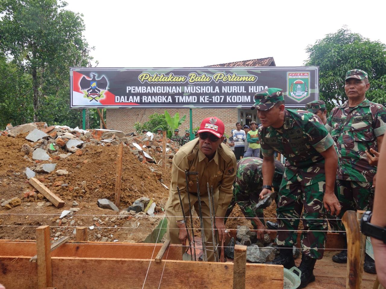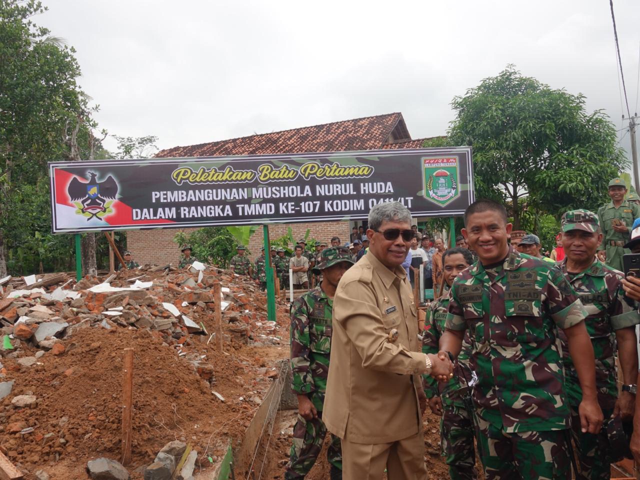 PADANG RATU, Program TNI Manunggal Masuk Desa (TMMD) merupakan sebuah program terpadu antara TNI dan Pemerintah Daerah yang bertujuan untuk mempercepat pelaksanaan pembangunan daerah. Demikian disampaikan Dandim 0411/LT Letkol Czi Burhanudin S.E M.Si Pada hari Senin 3 Februari 2020, pada acara pembukaan TNI Manunggal Masuk Desa (TMMD di Kampung Sumbersari Kecamatan Padang Ratu). Ditambahkan Letkol Burhanudin bahwa kegiatan ini diawali peletakan batu pertama pembangunan Mushola Nurul Huda di Dusun 2 Kampung Sumbersari Kecamatan Padang Ratu dan ini merupakan salah satu program TMMD ke 107. Program TMMD itu sendiri merupakan wujud bhakti TNI kepada masyarakat. Dijelaskan Letkol Burhanudin selain membangun mushola, program TMMD juga akan melakukan bedah rumah sebanyak enam (6) unit, dan juga pembangunan jalan onderlagh sepanjang 2.4 KM. Untuk itu Dandim 0411/ LT Letkol Burhanudin mengucapkan terima kasih kepada Bupati Lampung Tengah Loekman Djoyosoemarto atas petunjuknya dan bantuanya sehingga pelaksanaan TMMD di Kecamatan Padang Ratu ini bisa berjalan dengan baik dan sukses. Sementara itu Bupati Lampung Tengah Loekman Djoyosoemarto dalam sambutannya mengatakan bahwa program pelaksanaam tahap pertama TMMD ke 107 patut diapresiasi karena dapet membantu masyarakat pedesaan. "Kegiatan TMMD ke 107 dipusatkan di Lampung Tengah, maka kita wajib bangga dan mensukseskan kegiatan ini," Loekman berharap kepada masyarakat agar saling bahu membahu membangun desanya khususnya di kampong sumber sari ini. Bupati menjelaskan melalui TMMD ini banyak yang akan dilakukan oleh Pihak TNI melalui budaya gotong royong, inilah falsafah gotong royong bukan saja bupatinya saja yang mengajak bergotong royong akan tetapi TNI nya juga mengajak bergotong royong. (DISKOMINFO LAMPUNG TENGAH)
