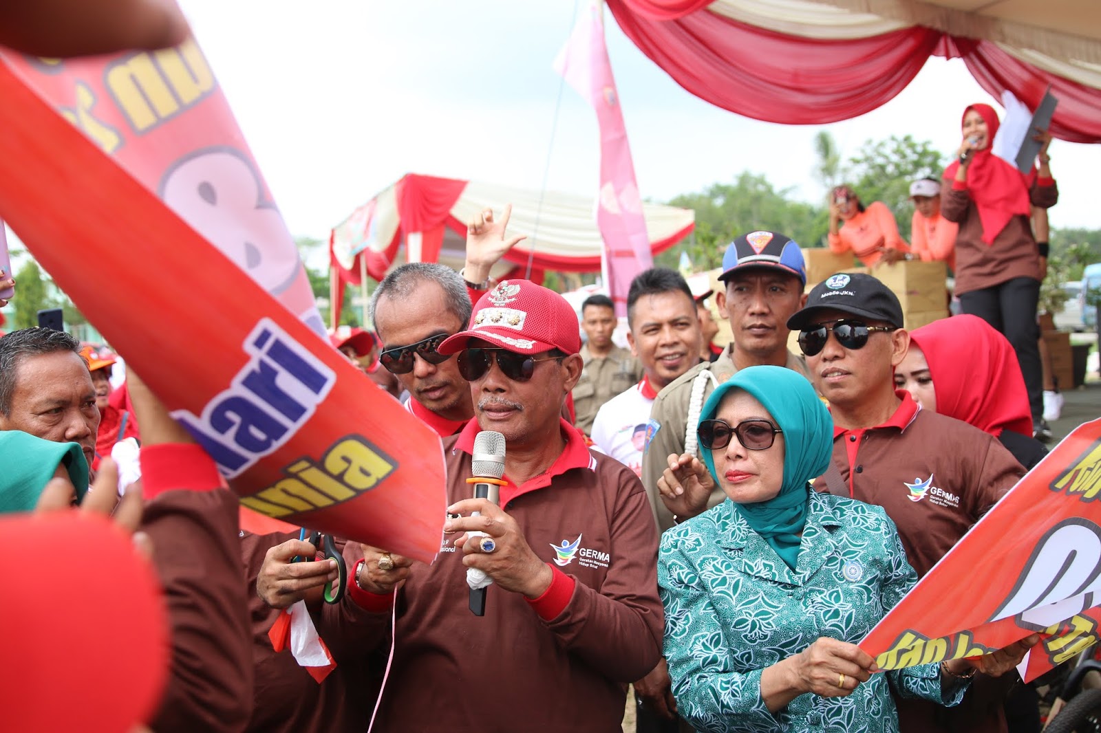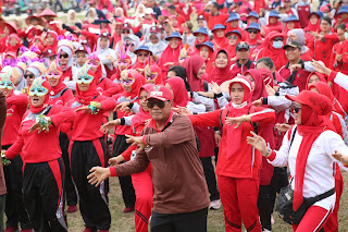 TERUSANUNYAI - Bupati Lampung Tengah Loekman Djoyosoemarto membuka secara resmi peringatan Hari Kesehatan Nasional ke - 55 di Lapangan Kampung Bandar Sakti Kecamatan Terusan Unyai (11/12/2019) . Dalam Peringatan Hari Kesehatan Nasional ke - 55 ini juga diperingati Hari Cuci Tangan Pakai Sabun Sedunia , Hari AIDS Sedunia dan Hari Kesehatan Jiwa Sedunia. Acara diisi dengan berbagai lomba dan senam bersama.