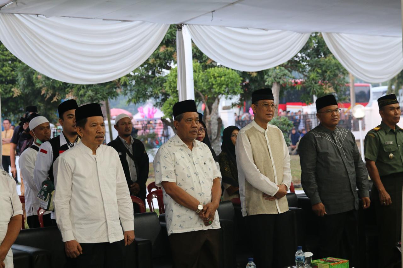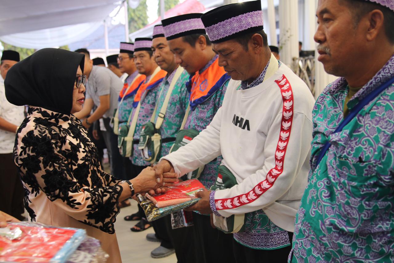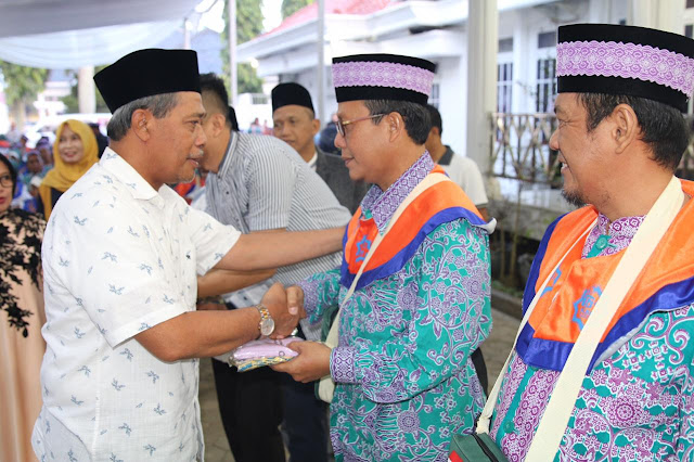 GUNUNG SUGIH, RAPEMDA 92,8 FM - Bupati Lampung Tengah Loekman Djoyosoemarto melepas keberangkatan calon Jemaah Haji Kabupaten Lampung Tengah Tahun 2019 M / 1440 H Kloter 50, di Rumah Dinas Wakil Bupati Lampung Tengah Rabu, (27/7/2019). Total Calon Jamaah Haji Kabupaten Lampung Tengah pada tahun 2019 terdiri dari 649 orang Laki-laki dan 704 Orang Perempuan sehingga Calon Jamaah Haji yang berangkat melalui Kabupaten lampung tengah sebanyak 1353 orang dan terbagi menjadi 5 kloter yaitu Kloter 5 sebanyak 402orang kloter,37 sebanyak 385orang, kloter 50 sebanyak 402 orang, kloter 58 sebanyak 136 orang, kloter 64 sebanyak 28 orang Bupati Lampung Tengah Loekman Djoyosoemarto mengucapkan "selamat menunaikan ibadah haji seraya mendoakan semoga memperoleh haji yang mabrur. “ Untuk mendapatkan predikat haji mabrur dan mabrurah, harus diawali dengan niat yang tulus dan diikuti dengan melaksanakan seluruh rangkaian manasik haji sesuai dengan cara yang diajarkan oleh Allah dan Rasul-Nya” Ujar Bupati Loekman. Kepada para jamaah haji yang sudah mendapatkan kesempatan menunaikan ibadah haji tahun agar kesempatan ini dipergunakan sebaik baiknya mengingat diluar sana banyak yang sudah mendaftar namun belum mendapatkan kesempatan untuk menunaikan ibadah haji. Bupati juga berharap agar seluruh jamaah yang berangkat hari ini bisa menjalankan ibadah haji dengan lancar.