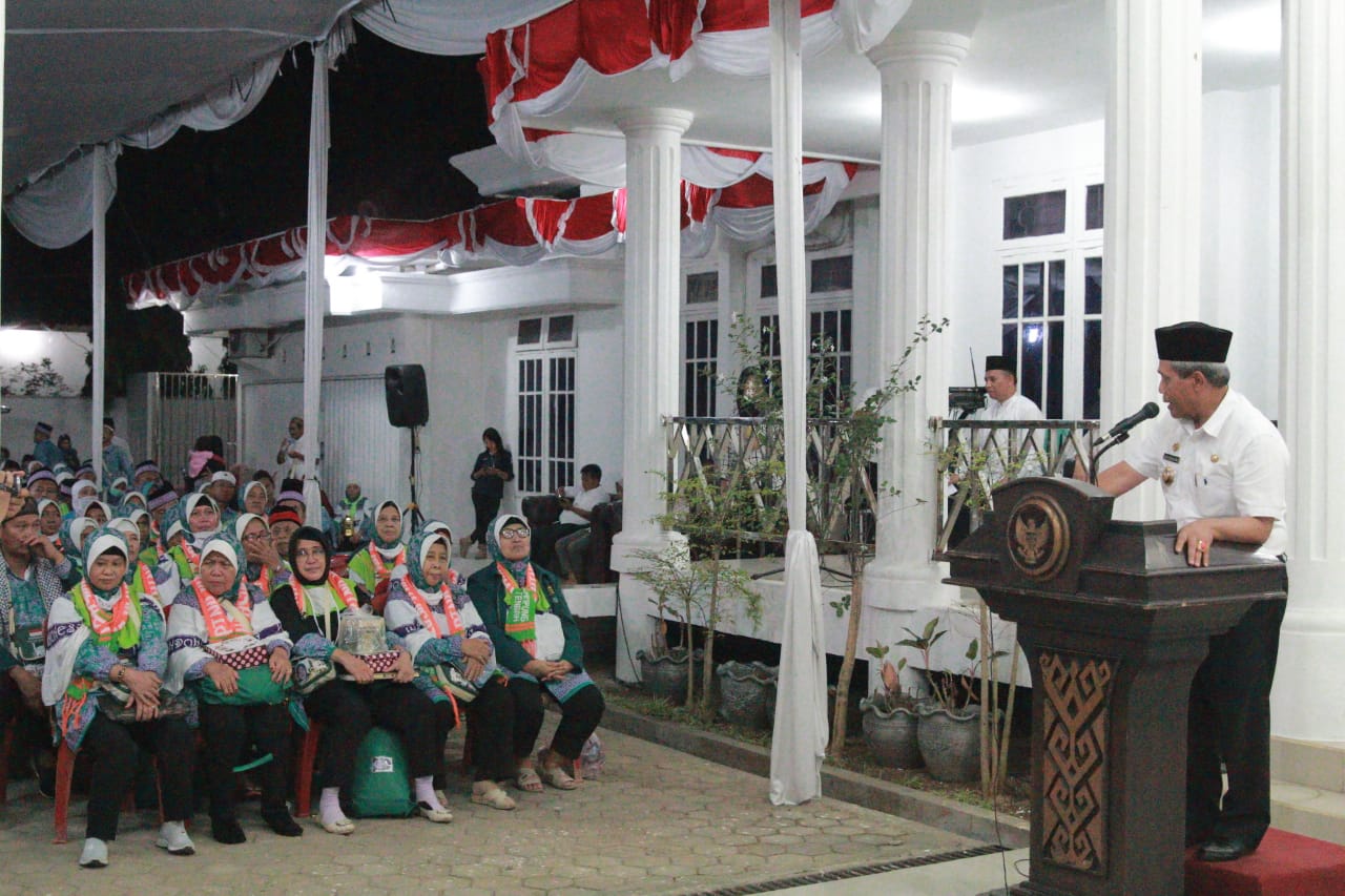 GUNUNG SUGIH , RAPEMDA 92,8 FM - Bupati Lampung Tengah Loekman Djoyosoemarto didampingi Sekda Adi Erlansyah menyambut kepulangan jamaah haji kloter pertama asal Lampung Tengah yang telah tiba di Tanah air, di Rumah Dinas Wakil Bupati Rabu (21/8/2019). Rombongan yang pertama tiba ini merupakan jamaah yang tergabung dalam kloter 5 2019M/1440 H. Kabupaten Lampung Tengah pada tahun 2019 terdiri dari 649 orang Laki-laki dan 704 Orang Perempuan sehingga Jamaah Haji yang berangkat melalui Kabupaten lampung tengah sebanyak 1353 orang dan terbagi menjadi 5 kloter. Sementara itu, Ketua Kloter 5 selaku Pemandu Haji Indonesia H. Muslim Umar menyampaikan rasa terima kasih dan penghargaan kepada Bupati Lampung Tengah Loekman Djoyosoemarto Lampung dan segenap panitia penyelenggara haji 2019. “Alhamdulillah, kloter 5 pulang dengan formasi lengkap sehat wal'afiat. Semua berkat dukungan dan bantuan Pemerintah dan segenap panitia yang membantu kelancaran dan kemudahan bagi jamaah dalam melaksanakan ibadah haji maupun berbagai keperluan sehari-hari mulai dari Lampung Tengah Tanah Suci bahkan hingga kembali lagi ke Lampung," katanya.Dirinya menambahkan pada tahun ini jamaah haji mendapatkan pelayanan yang sangat baik, mulai dari akomodasi, transportasi yang difasilitasi oleh pemerintah sangat nyaman dan mudah di akses. Bupati mengucapkan syukur atas kepulangan jamaah haji yang pulang ke Tanah Air dengan selamat dan berdoa semoga menjadi haji yang mabrur dan mabruroh