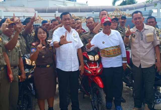 Gunung Sugih - Perhatian Pemerintah Kabupaten Lampung Tengah kepada aparatur tingkat kecamatan makin ditunjukkan pada era kepemimpinan Bupati Loekman Djoyosoemarto. Terbaru, Loekman menyerahkan kendaraan bermotor kepada 28 Kepala Seksi Ketenteraman dan Ketertiban (Kasi Trantib) Satuan Polisi Pamong Praja (Sat Pol PP) dari 28 kecamatan, di halaman Rumah Dinas Bupati Lampung Tengah, Rabu (27/11/2019). Dikatakan Loekman, pemberian kendaraan bermotor bertujuan untuk memperlancar tugas aparatur kecamatan, serta menjaga ketenteraman dan ketertiban wilayah di masing-masing kecamatan. "Dengan penyerahan kendaraan ini diharapkan dapat menjadi alat transpotasi, yang tentunya dapat mempermudah pekerjaan para Kasi Trantib di wilayahnya masing-masing. Untuk itu, mereka ini diharapkan dapat cepat dan tanggap untuk terjun ke lokasi, bila nanti ada peristiwa di wilayah tugasnya masing-masing. Ini bertujuan agar laporan ke tingkat kabupaten lebih maksimal," kata Bupati. Dilanjutkan Bupati, pemerintah kabupaten juga akan memberikan bantuan bahan bakar minyak per bulan sebesar Rp 200 ribu. "Jadi tidak ada alasan lagi bagi mereka dalam bekerja. Pelayanan kepada masyarakat harus maksimal. Oleh karenanya, saya meminta para Kasi Trantib Pol PP untuk keliling ke kampung-kampung, melihat kondisi di kampung. Selain itu, mereka juga harus berinteraksi dengan masyarakat agar mengetahui program program pemerintah daerah di tingkatan paling bawah dipastikan berjalan dengan baik," bebernya. Terpisah, Kasat Pol PP Pemkab Lamteng Rosidi mengatakan bahwa dengan adanya kendaraan dinas tersebut, Kasi Trantib diwajibkan lebih giat dalam bekerja. "Tidak boleh ada lagi alasan apapun. Apa lagi beralasan karena jarak jauh, atau tidak ada kendaraan. Oleh karenanya, saya akan pantau langsung kinerja Kasi Trantib ini," pungkasnya. (DISKOMINFO LAMPUNG TENGAH)