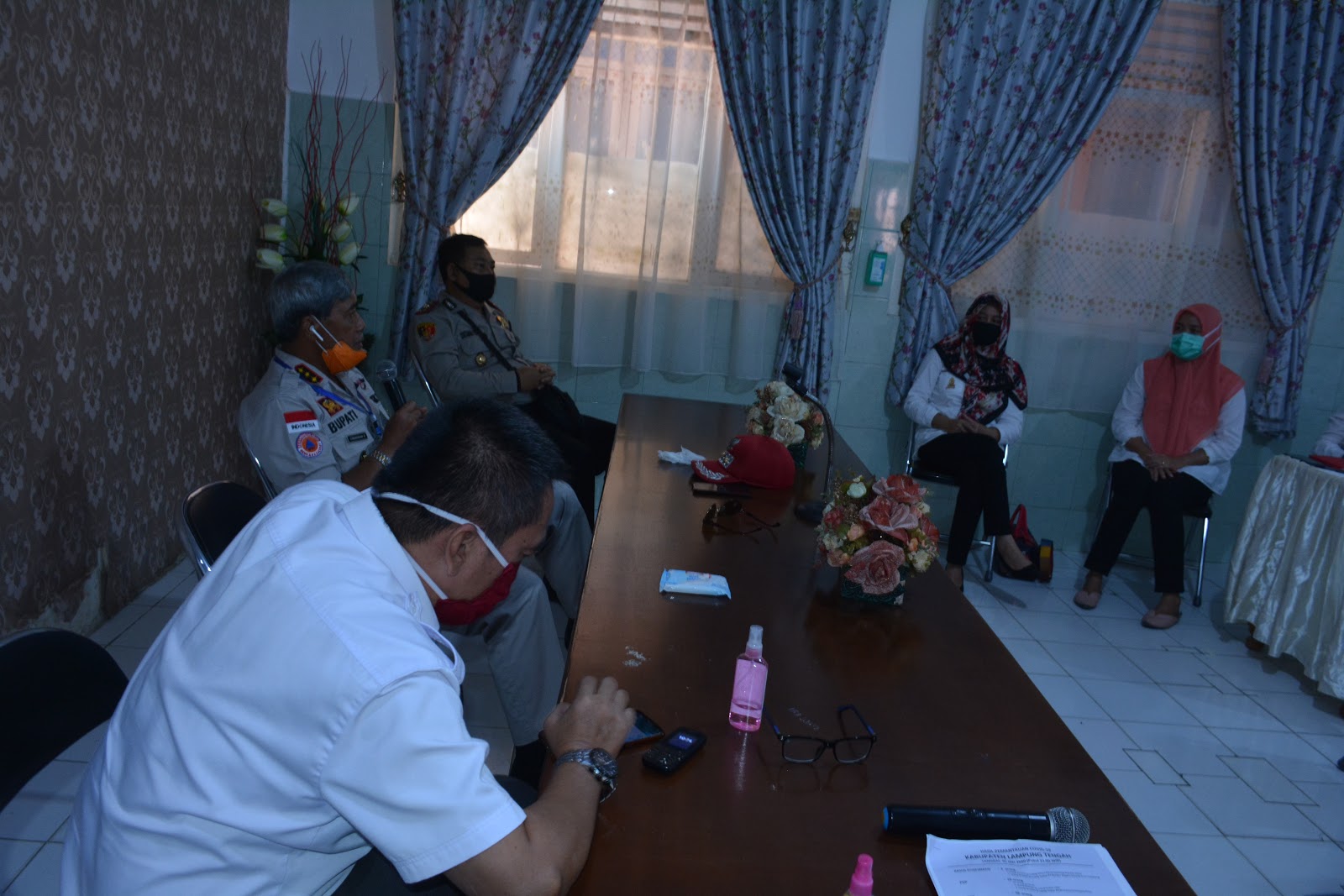 BANDAR JAYA, Bertambahnya angka kasus positif Covid-19 di Kecamatan Terbanggi Besar, Bupati Lampung Tengah Loekman Djoyosoemarto, Rabu 06 Mei 2020 mengadakan pertemuan terbatas dengan Camat Terbanggi Besar, Kepala Kampung dan Puskesmas guna mengantisipasi penyebaran virus corona di wilayah Bandar Jaya Barat dan sekitarnya Acara rapat terbatas tersebut berlangsung di Ruang Pertemuan Puskesmas Bandar Jaya yang juga dihadiri dari Gugus Tugas Kecamatan, TNI dan Polri dan Kepala Dinas Kesehatan dr. Otnil. Dalam kesempatan tersebut Bupati mengungkapkan, salah satu problem yang dihadapi saat ini adalah masih banyaknya warga yang tidak menghiraukan anjuran pemerintah terkait social distancing dan physical distancing, sehingga harus lebih ditingkatkan lagi kewaspadaan. Salah satunya adalah dengan melakukan turun kejalan sebagai bentuk evaluasi, bahwa di beberapa ruas jalan yang ramai dilalui masyarakat dan kendaran untuk memberikan edukasi kewaspadaan seperti penggunaan masker dan social distancing dan masih terlihat warga banyak keluar rumah tanpa APD. Loekman menambahkan dengan adanya status peningkatan kasus covid-19 ini kita harus bekerja lebih ektra lagi. (DISKOMINFO LAMPUNG TENGAH)