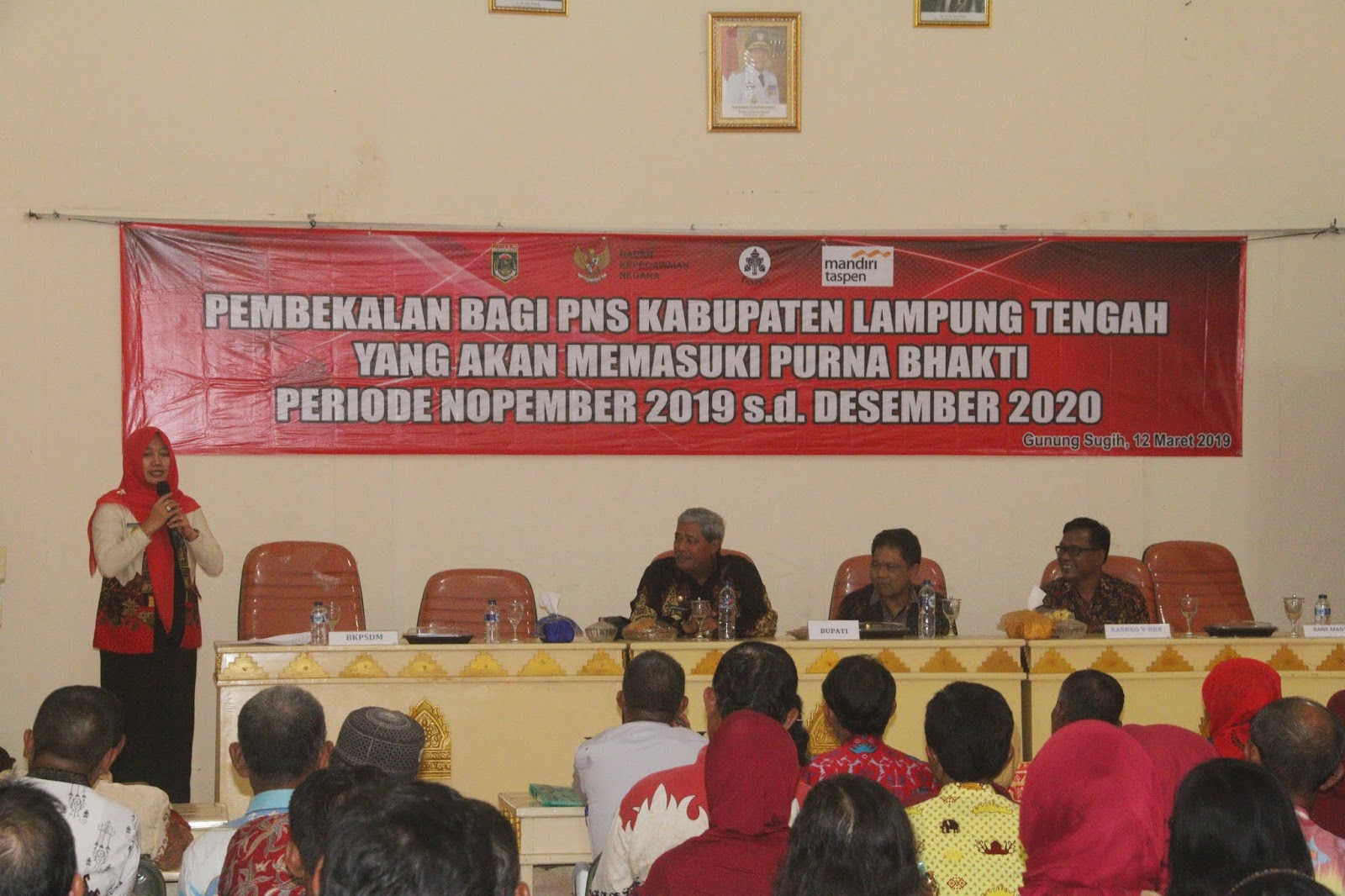 GUNUNG SUGIH – RAPEMDA 92,8 FM, Sebanyak 612 Aparatur Sipil Negara (ASN) Kabupaten Lampung Tengah ditahun 2019 ini akan mengakhiri masa baktinya, Kamis 14 Maret 2019 berkumpul di Aula BKPSDMD guna mendapatkan Pembekalan. Hal tersebut ditegaskan oleh Kepala Badan Kepegawaian dan Pengembangan Sumber Daya Manusia Daerah (BKPSDMD) Kabupaten Lampung Tengah DR.Candra Puasati, Dijelaskan DR Candra bahwa pada hari ini yang mengikuti pembekalan sebanyak 2014 orang terdiri dari struktural 124 orang , sedangkan dari pungsional 80 orang . Sementara itu Bupati Lampung Tengah Loekman Djoyosoemarto dalam arahannya menyampaikan selamat dan terimakasih kepada ASN yang sebentar lagi memasuki masa purna tugas. Bupati mengajak mari kita rubah paradigma, bahwa masa pensiun atau purna tugas bukan beban, melainkan merupakan gerbang menuju kehidupan bermasyarakat dan ladang amal, Menurut Bupati masa purna tugas dapat diartikan sebagai suatu awal pengabdian yang lebih besar, yaitu pengabdian kepada keluarga, masyarakat, Bangsa dan Negara. Selain itu bupati mengingatkan kepada para Asn yang akan memasuki masa pensiun bahwa berakhirnya masa tugas kita sebagai ASN bukan berarti berakhir pula tanggung jawab kita kepada bangsa dan negara justru sebaliknya ditambahkan loekman ASN yang telah memasuki masa pensiun harus menjadi contoh tauladan ditengah tengah masyarakat dan menagabdilah sampai diakhir Usia (DISKOMINFOLAMTENG)