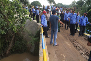 KECAMATAN BEKRI - RAPEMDA 92,8 FM, Terkait Musibah Banjir Di Lampung Tengah 17 Februari 2019 yang baru lalu, Bupati Lampung Tengah Loekman Djoyosoemarto dengan didampingi sekertaris Daerah Adi Erlansyah mengunjungi warga masyarakat Korban Bencana banjir di Kampung Goras Jaya Kecamatan Bekri,Senin 18 Februari 2019. Minggu 17 Februari 2019 sebelumnya bupati lampung Tengah Loekman Djoyosoemarto mengunjungi korban banjir di kecamatan Anak tuha dan Kecamatan Pubian. Ratusan Warga Masyarakat Korban bencana banjir begitu riang gembira atas kehadiran bupati Beserta rombongan bahkan tanpa sadar seorang nenek mengungkapkan keharuannya atas kehadiran bupati langsung memeluk bupati. Dalam sambutannya camat Bekri Imron mengucapkan terima kasih atas kehadiran Bupati beserta rombongan yang telah berkenan meluangkan waktunya untuk melihat secara langsung kondisi warganya yang terkena musibah, ditambahkan imron bahwa banjir di kampung goras jaya ini adalah merupakan banjir tahunan saat musin penghujan tiba, untk itu imron meminta kepada bupati beserta dinas terkait untuk memperbaiki sarana tanggul yang ada, sehingga bila musin penghujan tiba maka kampung goras jaya tidak lagi terendam banjir. menggapi keluhan warga adanya tanggal yang jebol dan tidak layak bupati lampung tengah loekman djoyosoemarto langsung mengundang balai besar wilayah sungai mesuji sekampung untuk mengatasi tanggul yang jebol tersebut. dari Pantauan Tim Liputan Dinas Kominfo Lampung Tengah sekitar 47 rumah warga terendam banjir dengan Ketinggian air mencapai sepinggang orang dewasa dan banjir tersebut melanda 3 dusun di kampung goras jaya bahkan merendam persawahan warga. Dalam Kunjungannya ke kampung Goras jaya meninjau warga yang terkena banjir Bupati memberikan Bantuan untuk tahap awal ini yaitu menyerahkan berupa beras,minyak,makanan siap saji,alas tidur,dan obat obatan Bantuan tersebut diserahkan langsung oleh sekertaris Daerah Adi Erlansyah secara simbolis kepada warga masyarakat yang terkena korban bencana banjir. Dalam dialog nya dengan warga bupati lampung tengah loekman djoyosoemarto berpesan agar warga sabar dalam menghadapi bencana alam banjir yang terjadi. selain itu Bupati juga berpesan agar warga terus melakukan bergotong royong dalam menghadapi bencana yang sedang melanda kabupaten Lampung Tengah khusus nya di Kampung Goras Jaya dan Sinar Banten. Usai memberi bantuan Bupati Lampung tengah Loekman Djoyosoemarto juga meninjau langsung tanggul yang jebol dengan berjalan kaki dengan didampingi sekertaris daerah adi erlansyah dan beberapa kepala OPD serta perwakilan dari balai Besar PUPR Propinsi Lampung. sebelum meninggalkan lokasi kepada wak media bupati Lampung Tengah Loekman Djoyosoemarto menjelaskan meski jebolnya tanggul ini kewenangan pihak wilayah sungai mesuji sekampung namun demi kenyamanan warga masyarakat sebagai kepala derah bupati lampung tengah leokman djosyosoemarto turut bertanggung jawab dan akan ikut memperbaiki bersama sama tanggul yang jebol ini sehingga warga masyarakat kampung goras jaya tidak perlu khawatir banjir lagi bila musim penghujan tiba ( DISKOMINFOLAMTENG - VERO & MINIQ )