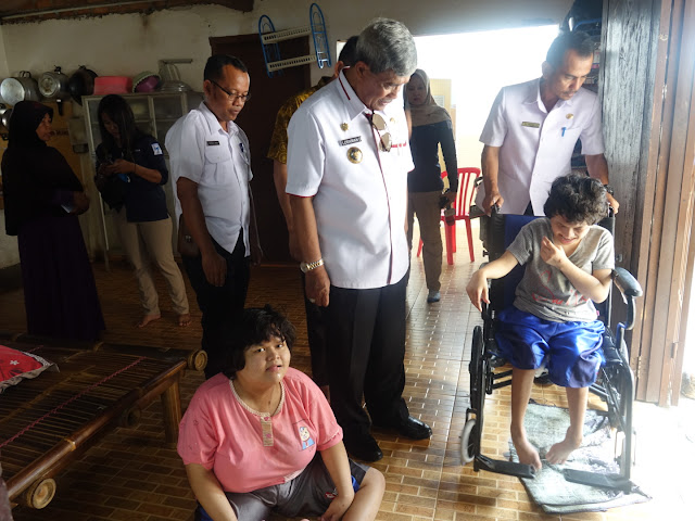 Terbanggi Besar, Kepedulian Bupati Lampung Tengah Loekman Djoyosoemarto terhadap warganya yang sakit adalah bukti nyata bukan sekadar janji belaka. Seperti yang dilakukan Bupati Loekman pada Rabu, 29 Januari 2020, Bupati beserta rombongan mengunjungi warga yang memiliki anak berkebutuhan di Kampung Karang Endah. Adalah Emil Kamila (53) warga Karang Endah Dusun 1 RT 01 RW 01 Kecamatan Terbanggi Besar yang merupakan ibu dari tiga orang anak yang semua nya berkebutuhan khusus. Ketiga anaknya yaitu Lutfi Fadli Ramadani (25), Mutia Artiana Diah(23), dan Arum Kumala(19). Ketiga anak dari Ibu Emil berkebutuhan khusus, tidak dapat melihat, tidak dapat berjalan dan tidak dapat berkomunikasi dengan lancar. Sejak suami nya meninggal dunia, Emil Kamila harus berjuang sendiri mengurus ketiga anaknya. Ketiga anak Ibu Emil tidak dapat beraktifitas tanpa bantuan dari orang lain. Untuk makan harus disuapi begitu juga untuk berjalan atau mandi, harus dibantu oleh Ibu Emil. Bupati Lampung Tengah Loekman Djoyosoemarto pada saat tiba dilokasi mengungkapkan keprihatinannya terhadap apa yang dilami oleh ketiga anak dari Ibu Emil. Bupati juga memerintahkan dinas terkait untuk segera memberikan bantuan baik itu pengobatan maupun alat kesehatan. Loekman kemudian berpesan agar ibu Emil dapat bersabar dan pantang menyerah. Bupati Loekman juga memberikan secara langsung bantuan tali asih kepada Ibu Emil. "Untuk Ibu Emil saya minta tetap kuat dan sabar, dan pemerintah daerah akan mengupayakan bantuan semaksinal mungkin," ujar Bupati Loekman. Sementara itu Ibu Emil mengaku apa yang terjadi kepada ketiga anak nya adalah ujian dan akan dijalani dengan ikhlas, karena bagaimana pun anak adalah titipan dari Tuhan dan merupakan anugrah yabg harus disyukuri. Terkait kunjungan dari Bupati Lampung Tengah Loekman Djoyosoemarto, Ibu Emil mengaku sangat senang dan terharu atas kunjungan dari Bupati Lampung Tengah Loekman Djoyosoemarto. "Saya bersyukur sekali, Pak Bupati peduli kepada saya, mau berkunjung dan memperhatikan anak anak saya, terimakasih banyak Pak," ujar Emil. Kehadiran bupati Lampung Tengah Loekman Djoyosoemarto didampingi Direktur rumah sakit Umumn Daerah Demang Sepulau Raya Dr.Asril Syahdu dan Evi Diana,S,Sos.MH Kabid Pendaptaran Penduduk di Disdukcapil Kabupaten Lampung Tengah dalam kesempatan tersebut Bupati menyerahkan KTP dan Buah tangan kepada keluarga ibu Emil. (DISKOMINFO LAMPUNG TENGAH)