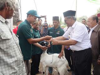 SEPUTIH RAMAN - RAPEMDA 92,8 FM, Bupati Lampung Tengah Loekman Djoyosoemarto menghadiri launching program integrated farming oleh BAZNAS (Badan Amil Zakat Nasional) di kampung Rukti Endah kecamatan Seputih Raman Jumat ( 25/10/2019). Ketua Lembaga Pemberdayaan Peternak Mustakhiq BAZNAS pusat Ajat Sudrajat mengatakan bahwa misi utamanya adalah memberdayakan dan proteksi peternak dan petani. Dengan begitu, petani dan peternak bisa menghadapi permasalahannya, khususnya prasaranan dan sarana, kepastian usaha resiko harga, kegagalan panen, praktek ekonomi dengan biaya tinggi dan antisipasi perubahan iklim. Dijelaskannya Program Sistem Pertanian Terpadu (integrated farming system) adalah satu sistem yang menggunakan ulang dan mendaur ulang, menggunakan tanaman dan hewan sebagai mitra, menciptakan suatu ekosistem yang “tailor-made”, meniru cara alam bekerja. "Ditambahkannya Yang kami berikan adalah indukan sehingga nanti bisa dikembangkan dan semoga program ini bisa mengembangkan bidang pertanian dan peternakan Lampung Tengah," ujarnya. Dalam acara ini juga diberikan bantuan secara simbolis berupa kambing ternak, sembako dan modal usaha sayur yang diberikan langsung oleh Bupati Lampung Tengah Loekman Djoyosoemarto. Dengan rincian sebanyak 282 ekor kambing, 110 paket sembako dan 5 penerima modal usaha sayur. Dalam sambutannya Bupati Loekman mengatakan bahwa program integrated Farming adalah program yang sangat bermanfaat. Loekman mengatakan bahwa pertanian terpadu menjadi solusi peningkatan kualitas mutu produksi pertanian baik secara kualitas dan kuantitas, serta menjadi jawaban dalam upaya meningkatkan kesejahteraan para petani. " Bidang pertanian menjadi konsentrasi dari pemerintah daerah Lampung Tengah.Mari bersama sama kita bangun Lampung Tengah," ujar Bupati. Selain itu, lanjut Bupati dari segi pemberdayaan, juga harus ditingkatkan kemampun petani dan peternak lewat pendidikan dan pelatihan. Ketua BAZNAS Lampung Tengah H Sutrisno mengatakan BAZNAS berinisiatif menjadi bagian dari solusi persoalan petani dan peternak dengan hadirnya program ini yang merupakan salah satu program penyaluran zakat melalui program integrated farming. Hadir dalam acara ini Anggota BAZNAS pusat Prof Mundzir Suparta MA anggota DPR RI Komang Koheri, beberapa kepala OPD pendamping dan Camat Seputih Raman Eko Danarto ( DISKOMINFO LAMPUNG TENGAH)