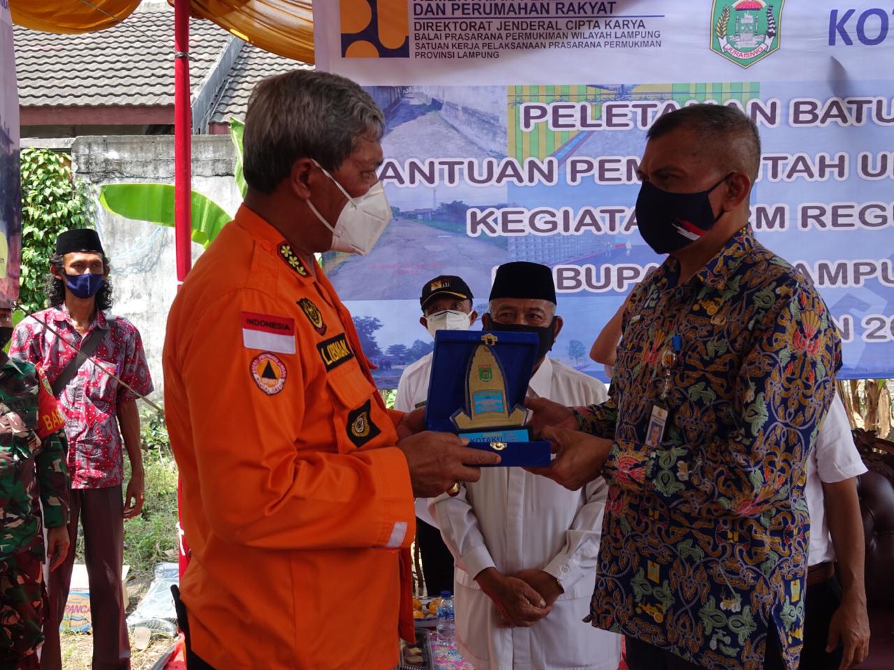 TERBANGGI BESAR. Bupati Lampung Tengah Loekman Djoyosoemarto menghadiri acara Lounching dan Peletakan Batu Pertama Kegiatan Pembangunan Bantuan Untuk Masyarakat (BPM) reguler kota tanpa kumuh (Kotaku) di Jalan Jendral Sudirman Gang R.A Kartini Kelurahan Bandarjaya Timur, Kecamatan Terbanggi Besar, Rabu 26 Agustus 2020. Kepala Sub bagian tata usaha Balai Prasarana Permukiman Wilayah Lampung Yoyok Seyio Utomo S.T mewakili Kepala Balai Prasarana Permukiman Wilayah Lampung mengatakan bahwa Program Kota Tanpa Kumuh (Kotaku) adalah satu dari sejumlah upaya strategis Direktorat Jenderal Cipta Karya Kementerian Pekerjaan Umum dan Perumahan Rakyat untuk mempercepat penanganan permukiman kumuh di Indonesia. "Program Kotaku akan menangani kumuh dengan membangun platform kolaborasi melalui peningkatan peran pemerintah daerah dan partisipasi masyarakat membangun sistem terpadu, sehingga pemerintah daerah memimpin dan berkolaborasi dalam perencanaan dan implementasi dengan mengedepankan kepentingan masyarakat." ujar Yoyok. Program Kotaku akan dijalankan dengan tepat mutu tepat waktu dan tepat sasaran sehingga hasilnya bisa dimanfaatkan oleh masyarakat. Dengan menitik beratkan kepada infrastruktur permukiman dan meningkatkan permukiman kumuh sesuai dengan indikator yang ada. Sehingga berkontribusi langsung terhadap luas permukiman kumuh di wilayah yang terpilih. Selain itu program Kotaku juga bertujuan untuk meningkatkan kesejahteraan masyarakat miskin. Sementara itu Bupati Lampung Tengah sangat mendukung program Kotaku dan mengatakan bahwa akan berkordinasi semaksimal mungkin sehingga program ini bisa berjalan lancar. Apalagi menurut Bupati Loekman bahwa Bandarjaya adalah salah satu wajah dari Lampung Tengah sehingga perlu dijaga dan dibangun sedemikian rupa sehingga bisa menjadi maju. "Selama ini program Gotong Royong telah saya gelorakan ini juga bertujuan untuk peningkatan wajah daerah terutama Bandarjaya, karena Bandarjaya adalah wilayah yang menjadi wajah Lampung Tengah, dengan adanya Program Kotaku semoga bisa terwujud Lampung Tengah yang lebih maju." ujar Loekman. Untuk diketahui bahwa progran ini di Kabupaten Lampung Tengah ada dua Kelurahan yang mendapatkan program Kotaku yaitu Kelurahan Bandarjaya Barat dan Kelurahan Bandarjaya Timur dengan nilai masing -masing kelurahan 1 milyar rupiah. Programn ini digunakan untuk pembangunan drainase dan rabat beton. Acara dilanjutkan dengan peletakan batu pertama oleh Bupati Lampung Tengah Loekman Djoyosoemarto yang menjadi tanda dimulainya program Kotaku di Kabupaten Lampung Tengah. (DISKOMINFO LAMPUNG TENGAH)