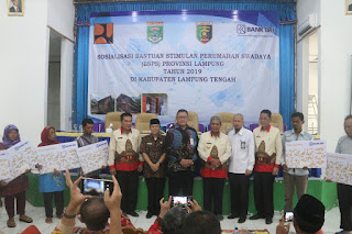 SEPUTIH BANYAK - RAPEMDA 92,8 FM, Sebanyak 550 penerima Bantuan Stimulan Perumahan Swadaya (BSPS)Provinsi Lampung pada kamis 4 April 2019 menghadiri sosialisi sekaligus penyerahan BSPS Provinsi Lampung di Kabupaten Lampung Tengah yang di adakan di LEC kecamatan Seputih Banyak. Demikian di lamporkan Kepala Dinas perumahan rakyat dan kawasan pemukiman Ir.Rudiyanto pada acara Bantuan Stimulan Perumahan Swadaya (BSPS) Ir Rudiyanto menjelaskan Progran ini merupakan program pemerintah pusat dalam hal ini kementrian PUPR dan Kabupaten Lampung Tengah merupakan Kabupaten dengan jumlah penerima bantuan terbanyak di Provinsi Lampung dan untuk diketahui Bantuan ini berupa rekening dan tidak bisa dicairkan keculi untuk membeli bahan bangunan dan upah tukang adapun besaran bantuan yang diterima oleh masing masing warga sebesar 17.500.000/orang yang bersal dari 12 kampung yang dan 7 kecamatan yaitu Kec sep mataram, kec Putra rumbia, kec Seputih Surabaya,kecamatan Seputih Agung, kecamatan trimurejo,kecamatan Rumbia dan kecamatan Way seputih dengan total anggaran biaya yang dikurkan oleh pemerintah pusat sebesar 9.6 milyar. Dijelaskan Bupati bahwa Pemerintah Daerah Lampung Tengah akan memberikan bantuan seluas luas nya untuk program ini dengan cara mengusulkan kepada pemerintah pusat apa yang menjadi kebutuhan warga masyarakat lampung tengah, untuk itu Bupati menegaskan bahwa dalam hal bantuan BSPS ini tidak ada potongan ataupun pungli. Apabila ada yang melakukan potongan maka segera laporkan dan bupati menindak tegas . Selain itu Bupati Lampung Tengah Loekman Djoyosoemarto menjelaskan bahwa tidak mungkin dana yang ada untuk membangun rumah layak. Namun hal itu bisa terwujud apabila dikerjakan dengan gotong royong sesuai dengan apa yang menjadi keutamaan Kabupaten Lampung Tengah yaitu kegiatan gotong royong demi terlaksananya program ini. Melalui gotong royong maka tidak menutup kemungkinan dengan bantuan BSPS sebesar 17.500.000 bisa terbangun rumah layak huni. Usai Memberikan Sambutan Dengan Didampingi Sekertaris Daerah Adi Erlansyah, kepala dinas Perkim Ir Rudiyanto, secara simbolis menyerahkan bantuan kepada perwakilan penerima bantuan Stimulan Perumahan Swadaya (BSPS) (DISKOMINFOLAMPUNG TENGAH)