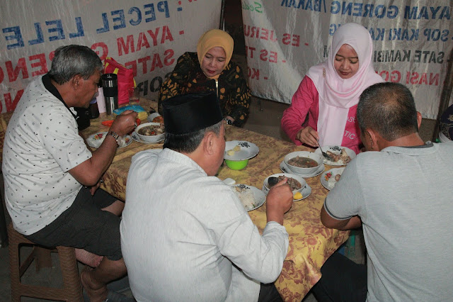 BANDAR JAYA – RAPEMDA 92,8 FM, Ingin menjadikan Kabupaten Lampung Tengah Sebagai kawasan Kuliner , di buktikan Bupati Lampung Tengah Loekman Djoyosoemarto dengan mengunjungi warung tenda yang berjualan di atas trotoar,tepat nya didepan Polsek terbanggi besar, Jum’at malam 26 Juli 2019. Dengan di dampingi Ibu Hj.Ellya Lusiana Loekman dan beberapa kepala Dinas seperti Kepala BKPSDM DR.Candra Puasati, Kepala Dinas Penanaman Modal dan Pelayanan Terpadu Satu Hi.Helmi, Kasat Pol PP Rosidi dan kabag Umum Edi Supena. Dengan senyumnya yang khas dan merasa tak segan sebagai seorang Kepala Daerah . Mantan Camat Seputih Agung ini mengambil alih Pemilik Warung tenda dengan menggoreng sendiri Tempe dan Juga Ikan Goreng kesukaannya.. Menurut Bupati dirinya sering merindukan duduk bersama masyarakat di warung warung tenda seperti ini, untuk itu bupati gotong royong ini meluangkan waktu duduk bersama warga sambil menikmati makan malam dan Sesekali ia bercerita dengan pengunjung dan juga pemilik warung. Ini salah satu ciri khas bupati yang begitu dekat dengan rakyatnya. Makan di tepi jalan maupun warung yang ada di Pinggir Jalan Raya hal ini dilakukan sekaligus promosi kuliner yang dilakukan Bupati. Tapi, ia pun selalu mengingatkan agar kebersihan dalam mengelola makanan dan minuman harus menjadi perhatian utama. Sebab, ketika mengemasnya tidak bersih, konsumen tentu akan menjauh. SKPD juga diminta untuk setiap saat memantau kualitas makanan yang ditawarkan.”Bila kebersihan terjamin, tentu pengunjung akan datang. Dijelaskan Bupati Dirinya sudah terbiasa sejak dahulu hingga kini sudah terbiasa makan di tepian jalan raya seperti ini, yang terpenting makanan nya enak dan sehat, dan yang paling terpenting salah satu tujuannya makan diwarung tenda seperti ini, ingin melihat secara langsung tentang proses penjualan dan segaligus memberi suport kepada para pedagang untuk lebih giat lagi.( DISKOMINFO LAMPUNG TENGAH)