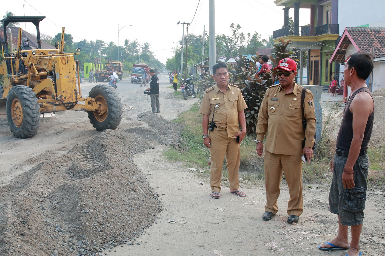 GUNUNG SUGIH – RAPEMDA 92,8 FM, Bupati Lampung Tengah Loekman Djoyosoemarto Selasa Sore 16 Juli 2019, secara langsung meninjau jalan rusak yang terletak di Kampung Gunung Sugih Baru Kecamatan Gunung Sugih. Dalam peninjauan tersebut, Bupati didampingi oleh Dinas Bina Marga, Pejabat Kecamatan, Kasat Pol PP Rosidi, Kabag Umum Hi. Edi Supena dan Kepala Kampung Gunung Sugih Raya. Bupati Lampung Tengah mengatakan, peninjauan ini dilakukan untuk mengetahui secara langsung kondisi jalan yang rusak. Loekman menegaskan bahwa Pemkab Lampung Tengah akan terus berusaha untuk mencari solusi terbaik terkait jalan ini. Mengingat ditambahkan Bupati jalan yang rusak saat ini merupakan tugas dan wewenang dari Pemerintah Provinsi. Jadi dengan begitu, Pemerintah daerah Kabupaten Lampung Tengah tidak dapat memperbaiki secara langsung jalan tersebut.Namun dijelaskan Bupati, dikarenakan sering macet dan berimbas pada prekonomian warga setempat, tentu pemerintah daerah tidak akan tinggal diam. Kami akan terus berupaya untuk mencari cara agar jalan ini masih tetap bisa dilewati dengan baik, lancar dan aman. Dalam kesempatan tersebut Bupati Lampung Tengah Loekman Djoyosoemarto mengungkapkan, dengan kondisi lobang jalan yang terus menerus digenangi air saat hujan menyebabkan lobang semakin membesar, ditambah lagi tidak adanya aliran drainase sehingga membuat jalan semakin hancur oleh aliran air untuk itu Bupati gotong royong ini mengirimkan beberapa Truk sabes dan 2 Unit Alat Berat, serta akan membuat gorong gorong . Sementara itu Kepala Lingkungan 2 Gunung Sugih Raya Sukirno sangat mengucapkan terima kasih kepada bupati lampung tengah Loekman Djoyosoemarto yang telah menyumbangkan sabes untuk perbaikan jalan ini,