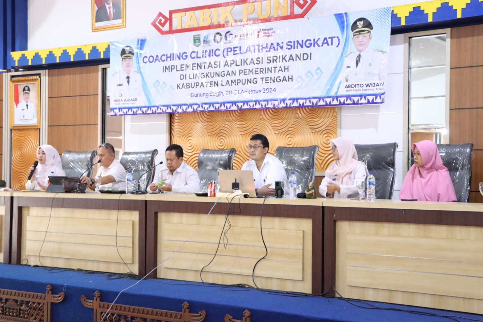 Asisten Bidang Administrasi Umum Sekretariat Daerah Kabupaten (Setdakab) Lampung Tengah (Lamteng), Drs. Eko Dian Susanto, M.I.P, mewakili Bupati Lamteng, menghadiri kegiatan Coaching Clinic (Pelatihan Singkat) Implementasi Aplikasi Srikandi (Sistem Informasi Kearsipan Dinamis Terintegrasi) Hari ke - 2 bagi Subbag Kepegawaian dan Operator Kecamatan se - Lamteng. Bertempat di Aula Siger Emas Lantai IV, Pemdakab Lamteng. Rabu (21/08/2024). Hadir dalam kegiatan tersebut antara lain, Kabid PPBE Dinas Kominfotik Lampung Tengah, Indra Gandi, S.E dan Kabid Pelayanan Dinas Perpustakaan dan Arsip Daerah Lamteng, Dalam arahannya, Eko Dian Susanto berpesan Kita semua harus siap dalam mendukung kelancaran implementasi aplikasi ini sebagai perwujudan pelaksanaan Sistem Pemerintahan Berbasis elektronik (SPBE). Kemudian, Beliau juga berharap agar peserta mengikuti seluruh kegiatan dengan serius dan fokus, karena hal ini akan menjadi bagian penting dalam keseharian melaksanakan tugas kedinasan yang menjadi tanggung jawab semua. (Diskominfotik Lampung Tengah)