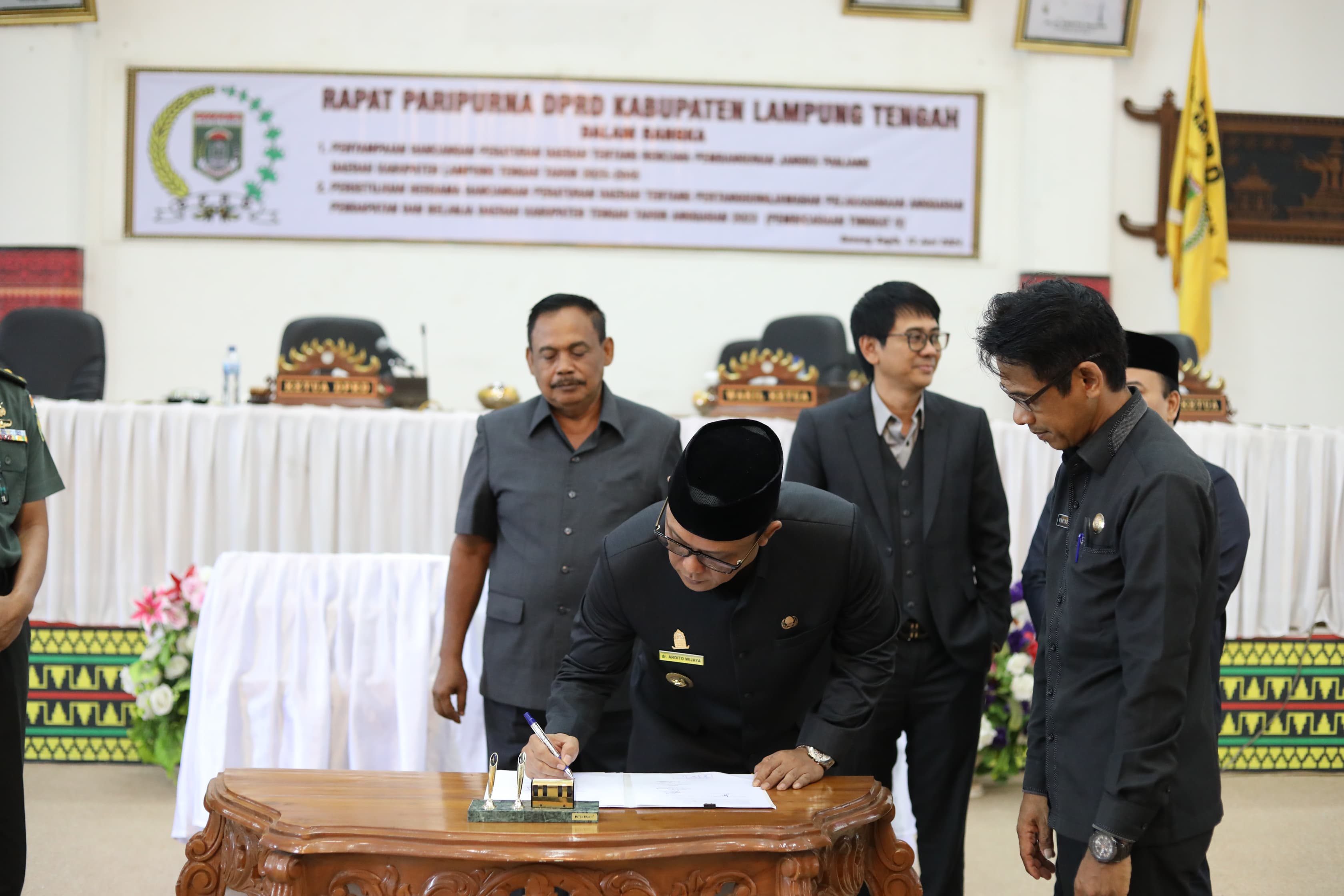 Wakil Bupati Lampung Tengah, dr. Ardito Wijaya menghadiri rapat Paripurna DPRD Kabupaten Lampung Tengah tentang penyampaian nota pengantar Raperda rencana pembangunan jangka panjang daerah RPJPD tahun 2025-2045 Kabupaten Lampung Tengah. rabu 12/6/2024 di Ruang Sidang DPRD Lampung Tengah. Hadir dalam kegiatan tersebut, Ketua dan wakil DPR Lampung Tengah, Forkopimda, Sekdakab lamteng, Para Staf Ahli Bupati, para Asisten, para kepala Perangkat Daerah di lingkungan Pemerintah daerah Kabupaten Lampung tengah dan dinas terkait dr. Ardito Wijaya dalam sambutanya menyampaikan, "dokumen perencanaan merupakan sebuah pedoman bagi pemerintah pusat maupun pemerintah daerah dalam melaksanakan tugasnya hal ini merupakan amanah dari undang-undang nomor 25 tahun 2004 tentang sistem perencanaan pembangunan nasional yang mengamanatkan bahwa dalam rangka penyelenggaraan pemerintahan pemerintah daerah berkewajiban menyusun rencana pembangunan daerah yang meliputi rencana pembangunan jangka panjang daerah untuk jangka waktu 20 tahun rencana pembangunan jangka menengah daerah untuk jangka waktu 5 tahun serta rencana kerja pemerintah daerah untuk jangka waktu 1 tahun. Berkaitan dengan rencana pembangunan jangka panjang daerah Kabupaten Lampung Tengah periode 2005-2025 akan berakhir, maka pemerintah Kabupaten Lampung Tengah berkewajiban untuk menyusun perencanaan jangka panjang pada periode berikutnya RPJPD 2025 sampai 2045 sebagaimana diamanatkan dalam peraturan menteri dalam negeri nomor 86 tahun 2017 tentang tata cara perencanaan pengendalian dan evaluasi Pembangunan Daerah tata cara evaluasi rancangan peraturan daerah tentang rencana pembangunan jangka panjang daerah dan rencana pembangunan jangka menengah daerah serta tata cara perubahan rencana pembangunan jangka panjang daerah rencana pembangunan jangka menengah daerah dan rencana pemerintah daerah. Raperda RPJPD tahun 2025-2045 merupakan penyempurnaan rancangan sebelumnya setelah mendapat masukan dari proses pembahasan rancangan awal dengan DPRD sinkronisasi dan penyelarasan RPJPD kabupaten dengan RPJPD provinsi dan RPJPN serta melalui musyawarah perencanaan pembangunan RPJPD. Berdasarkan visi RPJPN dan visi RPJPD provinsi Lampung tahun 2025-2045 maka visi RPJPD Kabupaten Lampung Tengah tahun 2025-2024 adalah, Lampung Tengah yang maju berdaya saing sejahtera dan berkelanjutan Upaya menggapai visi Kabupaten Lampung Tengah 2045 dalam bingkai visi Indonesia emas 2045 dan visi provinsi Lampung 2045 memerlukan perubahan paradigma membangun yaitu dengan melakukan transformasi pembangunan yang selaras dengan transformasi pembangunan nasional dan provinsi Lampung. Transformasi pembangunan selanjutnya ditetapkan menjadi misi pembangunan Kabupaten Lampung Tengah sebanyak 8 misi yang terdiri dari : (Pilar Transformasi Daerah) (Landasan Transformasi) (Kerangka Implementasi Transformasi Daerah) Arah kebijakan pembangunan Kabupaten Lampung Tengah memuat tentang prioritas pembangunan lima tahunan guna mencapai visi Lampung Tengah yang maju, berdaya saing sejahtera, dan berkelanjutan dan target sasaran pokok tahapan 5 tahun RPJPD. Arah kebijakan pembangunan Kabupaten Lampung Tengah dirumuskan berdasarkan hasil analisis terhadap kondisi dan tantangan Pembangunan Daerah serta arah pembangunan nasional yang dibagi ke dalam empat tahapan selama periode 2025-2045. Selain Rapat paripurna DPRD Lampung Tengah dalam rangka penyampaian rancangan peraturan daerah tentang rancangan Pembangunan jangka panjang daerah Kabupaten Lampung Tengah tahun 2024-2045, itu juga di agendakan persetujuan bersama rancangan peraturan daerah tentang pertanggung jawaban pelaksana anggaran pendapatan dan belanja daerah Kabupaten Lampung Tengah tahun anggaran 2023. (Diskominfotik Lampung Tengah)