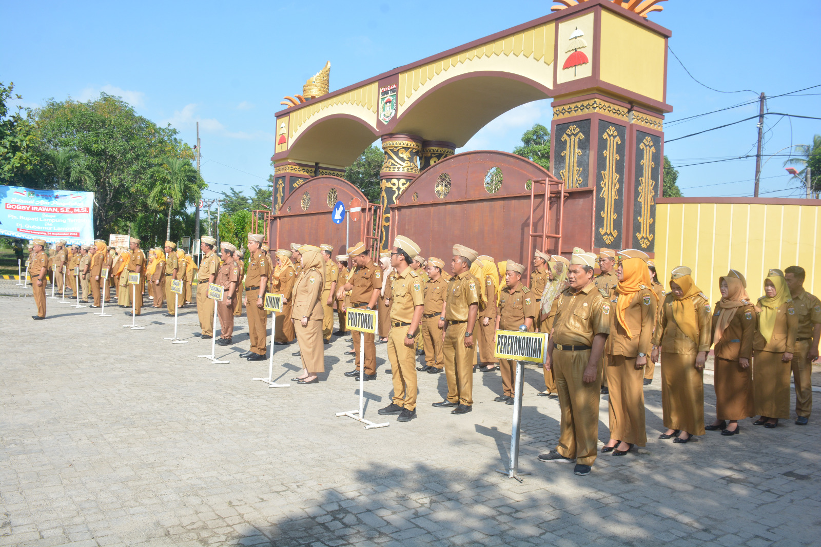 Staf Ahli Bupati Bidang Kemasyarakatan dan Sumber Daya Manusia Pemerintah Kabupaten (Pemkab) Lampung Tengah (Lamteng), DR. Candra Puasati, S.Pd, M.Pd, memimpin apel mingguan, di Lapangan Kantor Bupati Lamteng, Senin (21/10/2024). Apel minggu di bulan Oktober diikuti para staf ahli, Asisten dan Kepala Perangkat Daerah serta pegawai negeri sipil (PNS) dan tenaga honorer di lingkungan Pemkab Lamteng. Menyampaikan amanat Bupati Lamteng, Candra Puasati mengingatkan tentang kedisiplinan pegawai dalam menjalankan tugas dan tanggungjawabnya. Disamping itu, Candra Puasati juga berharap para aparatur sipil negara (ASN) bisa semakin meningkatkan kedisiplinan serta kinerjanya. “Tingkatkan prestasi dan capaian kinerja kita, sehingga tentunya akan berdampak positif terhadap peningkatan kinerja instansi masing-masing,” kata Candra Puasati. (Diskominfotik Lampung Tengah)