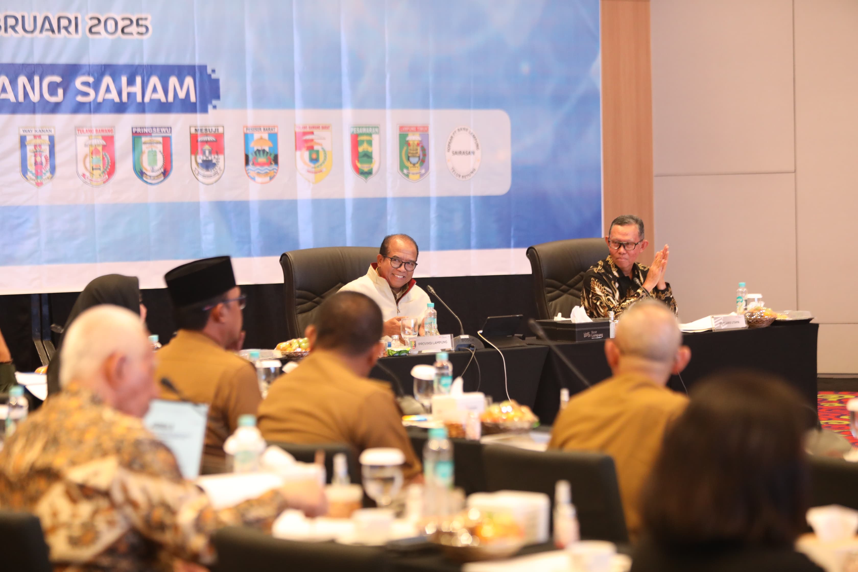 Wakil Bupati Lampung Tengah (Lamteng), dr. Hi. Ardito Wijaya, M.K.M menghadiri Rapat Umum Pemegang Saham Tahunan (RUPST) dan Rapat Umum Pemegang Saham Luar Biasa (RUPS-LB) Bank Lampung, di Hotel Novotel, Bandar Lampung. Senin (3/2/2025). Sebagai pimpinan rapat, Pj. Gubernur Lampung Dr. Drs. Samsudin, S.H., M.H., M.Pd., turut memberikan arahan terkait pentingnya sinergi antara pemerintah dan pemegang saham. RUPS ini juga menjadi kesempatan untuk memperkuat komitmen Bank Lampung dalam mendukung pembangunan daerah dan perekonomian Lampung secara keseluruhan. Melalui hasil RUPS ini, diharapkan Bank Lampung dapat terus tumbuh dan berperan signifikan dalam mendukung pertumbuhan ekonomi serta kesejahteraan masyarakat Provinsi Lampung. selain Penjabat Gubernur Lampung Dr. Drs. Samsudin, S.H., M.H., M.Pd., hadir juga dalam rapat tersebut kepala daerah se-Provinsi Lampung, Komisaris Utama Bank Lampung Fahrizal Darminto, Direktur Utama Bank Lampung Mahdi Yusuf, serta jajaran direksi PT. Bank Lampung.