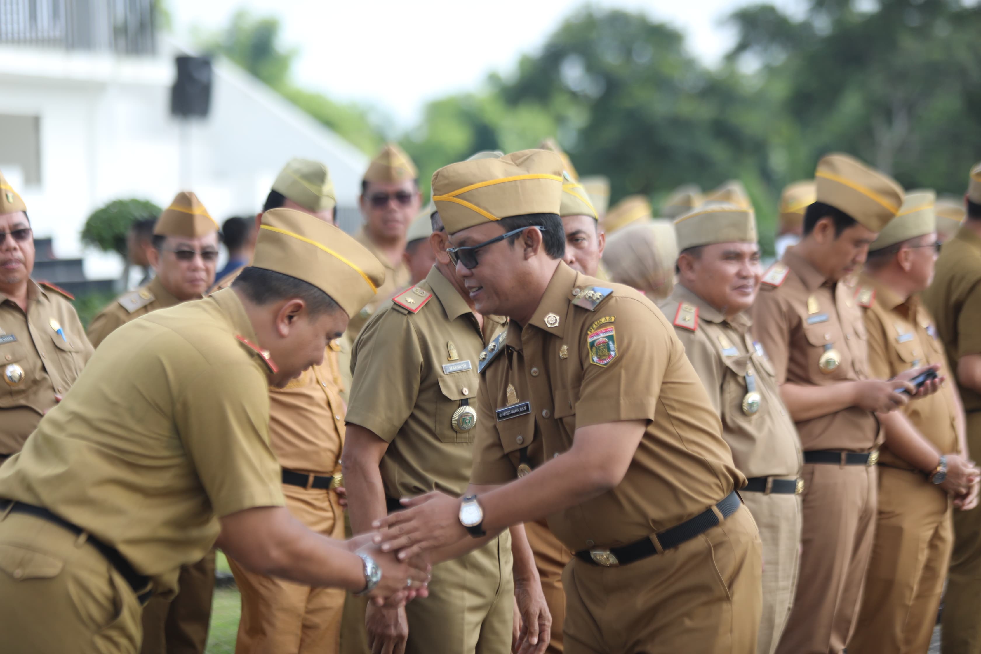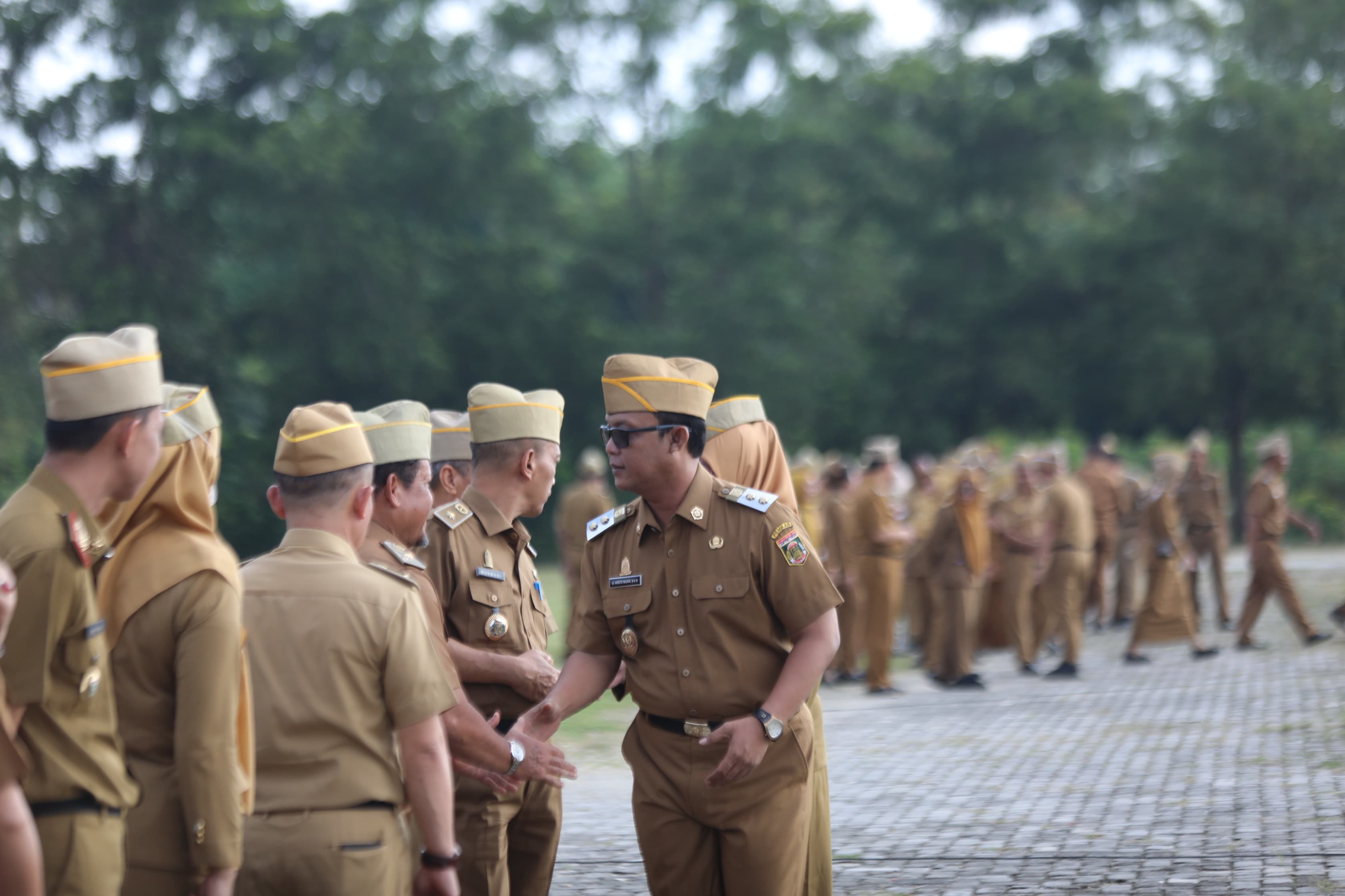 Wakil Bupati Lampung Tengah (Lamteng), dr. Hi. Ardito Wijaya, M.K.M memimpin Apel Bulanan perdana tahun 2025 dilaksanakan di Lapangan Merdeka Gunung Sugih. Senin (6/1/2025). Wakil Bupati, dr. Hi. Ardito Wijaya dalam sambutannya mengatakan Apel Perdana ini merupakan saat yang tepat untuk kita merenungkan kilas balik perjalanan pemerintah kabupaten lampung tengah, serta mengevaluasi hasil kerja kita di tahun 2024, sebagai refleksi untuk melakukan pembenahan-pembenahan fundamental sehingga kedepan, proses penyelenggaraan pemerintahan akan lebih terarah, optimal, efektif dan efisien. dr. Hi. Ardito mengajak peserta apel untuk mengawali tahun baru 2025 ini, dengan memperbaharui pola pikir dan perilaku sebagai aparatur pemerintah yang terpanggil untuk melayani dan bukan dilayani, tentu diiringi dengan meningkatkan semangat kerja, kreativitas, dan produktifitas dalam bekerja. Diakhir sambutannya, dr. Hi. Ardito berharap kepada peserta apel meningkatkan disiplin dan loyalitas, sikapi secara responsif dan konstruktif berbagai keluhan dari masyarakat, jawablah kritik masyarakat dengan melakukan inovasi, meningkatkan kualitas pelayanan publik, serta mewujudkan pelayanan birokrasi yang makin mudah dan semakin baik. Dalam apel tersebut hadir Pejabat Eselon I, Eselon II, Eselon III, Eselon IV dan Staf ASN / Honorer di lingkungan Pemkab Lamteng. (Diskominfotik Lampung Tengah)