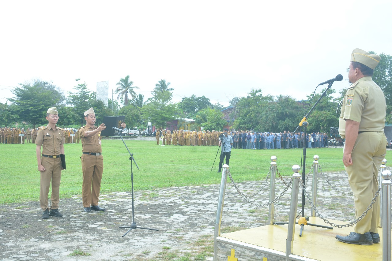 Asisten Bidang Administrasi Umum Sekretariat Daerah Kabupaten (Setdakab) Lampung Tengah (Lamteng), Drs. Eko Dian Susanto, M.I.P. mewakili Bupati Lamteng memimpin Apel Bulanan di Lapangan Merdeka Gunung Sugih. Senin (2/12/2024). Turut hadir dalam apel tersebut para Staf Ahli Bupati, Para Asisten, Para Kepala Perangkat Daerah, Para Kepala Bagian dan seluruh Pegawai di lingkungan Pemerintah Daerah Kabupaten Lampung Tengah. Dalam sambutannya Asisten, Drs. Eko Dian Susanto mengucapkan terimakasih dan memberikan apresiasi yang setinggi tingginya kepada seluruh pegawai pemerintah Kabupaten Lamteng yang telah mendukung dan berkontribusi dalam mesukseskan Pilkada 2024. Lebih lanjut, Eko Dian Susanto mengatakan untuk kita ketahui bersama Pilkada 2024 di wilayah Kabupaten Lamteng telah berjalan dengan lancar, damai dan sukses, serta kita harus selalu menghormati apapun yang telah menjadi hasil yang diputuskan oleh Komisi Pemilihan Umum (KPU) secara resmi nanti. Diakhir sambutannya, Beliau berharap semoga, pelaksanaan apel bulanan ini hendaknya dapat menjadi momentum dan landasan berpijak serta sumber motivasi untuk memperbarui pola pikir dan perilaku sebagai aparatur pemerintah yang terpanggil untuk melayani masyarakat dan bukan untuk dilayani. Untuk itu, Saya berpesan kepada seluruh ASN Kabupaten Lamteng, untuk menghindari segala bentuk kecurangan dalam bekerja, serta menjauhi hal-hal yang melanggar aturan perundangan-undangan. Dan terakhir, saya meminta saudara-saudara sekalian untuk meningkatkan disiplin dan loyalitas, lakukan inovasi dalam pelayanan publik, serta kita harus mampu memberikan pelayanan terbaik bagi masyarakat Kabupaten Lamteng. (Diskominfotik Lampung Tengah)